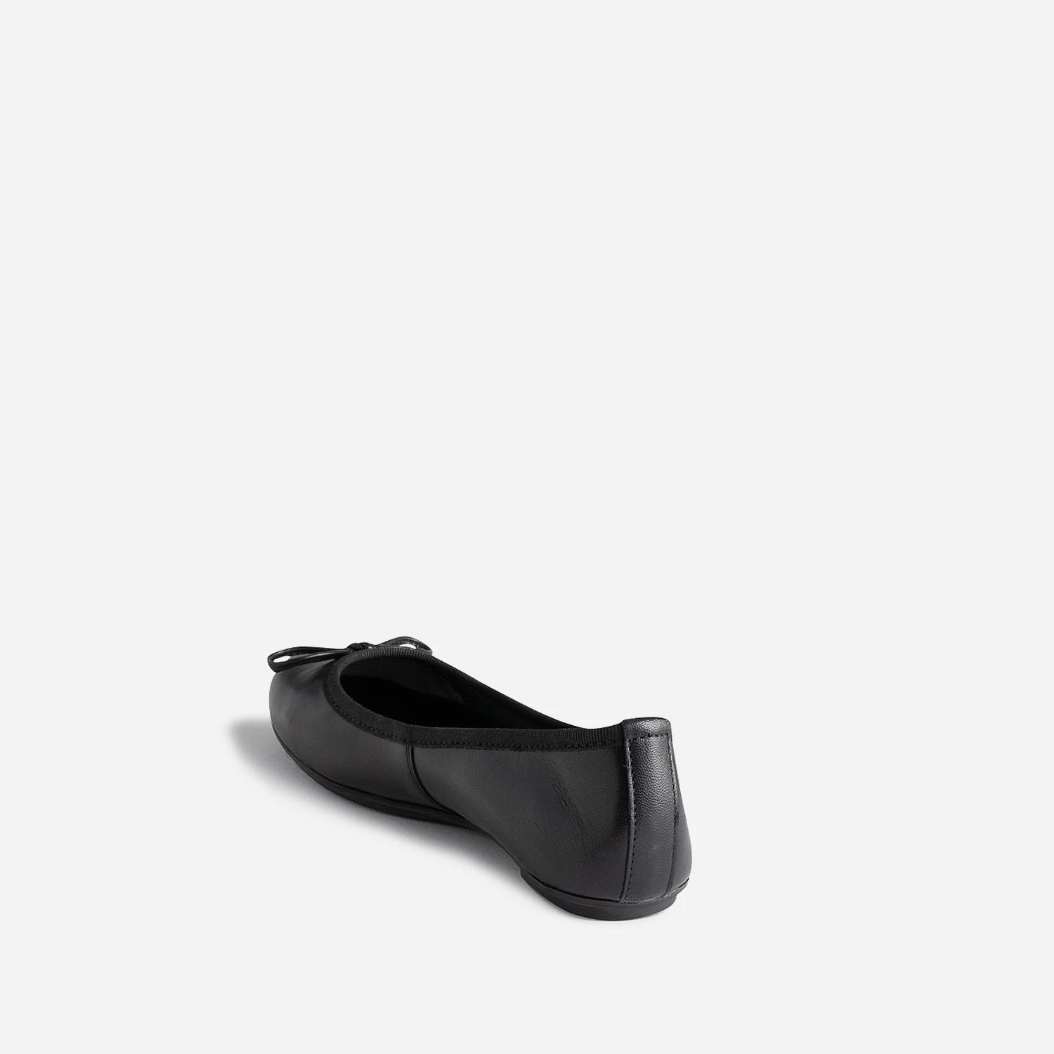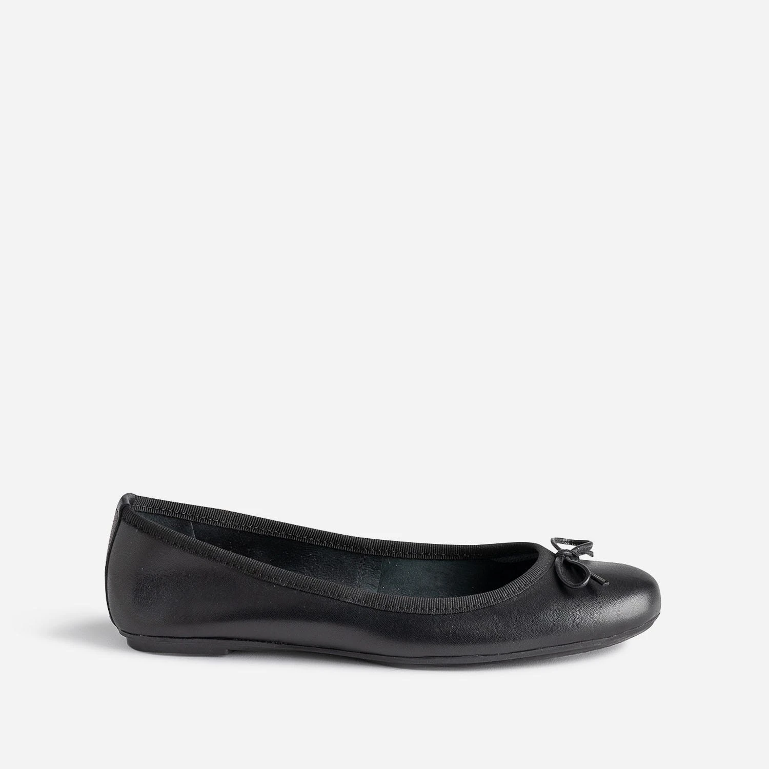 Comment échapper au retour de la ballerine ? Plate et toute en rondeur, elle séduit par son cuir noir et son petit nœud cousu sur le dessus. Assumez son esprit sage et romantique en l’associant avec une robe baby doll ou dédramatisez un look mode pointu en l’osant avec une petite veste carrée et un jean large.