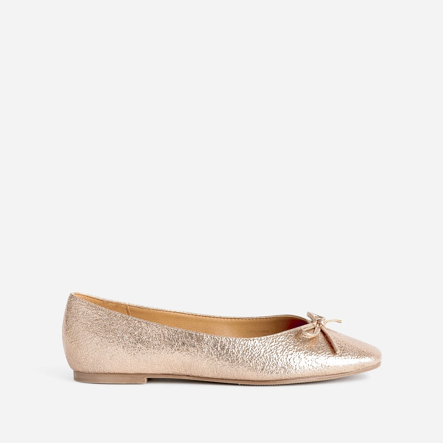 Une matière synthétique froissée, un coloris rose cuivré métallisé. La ballerine femme se modernise pour entrer dans l’été. Plate, elle présente un bout carré et un petit nœud emblématique cousu sur le dessus du pied. Avec un tailleur-pantalon pastel ou un look monochrome dans les tons rose ou beige, elle a tout pour vous plaire.