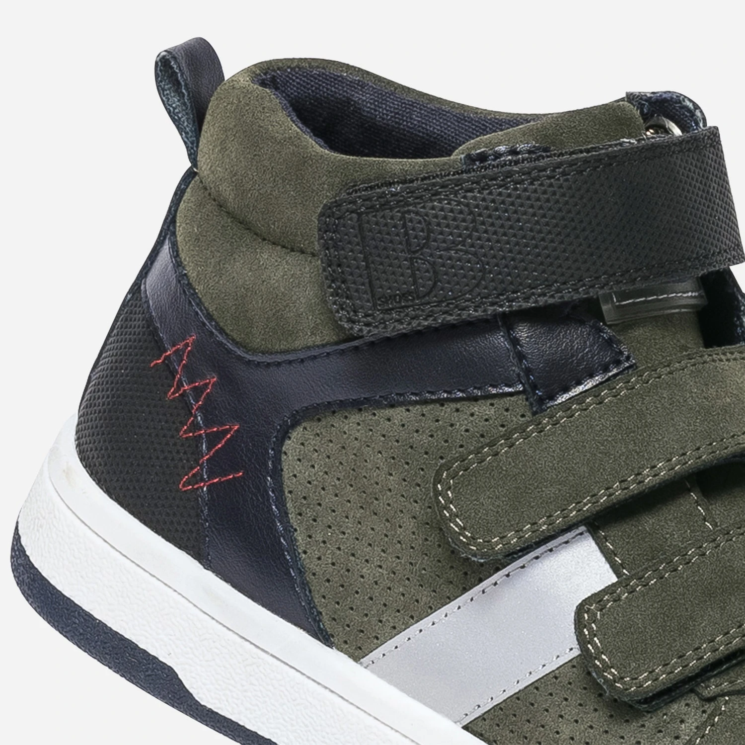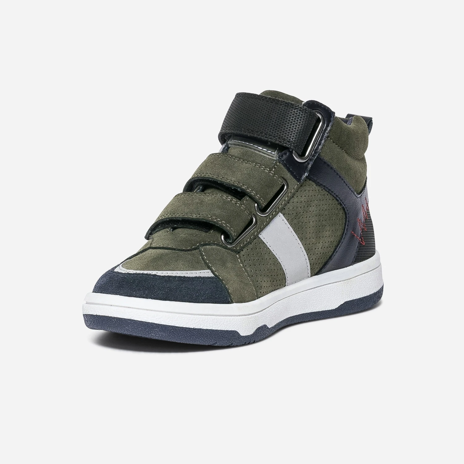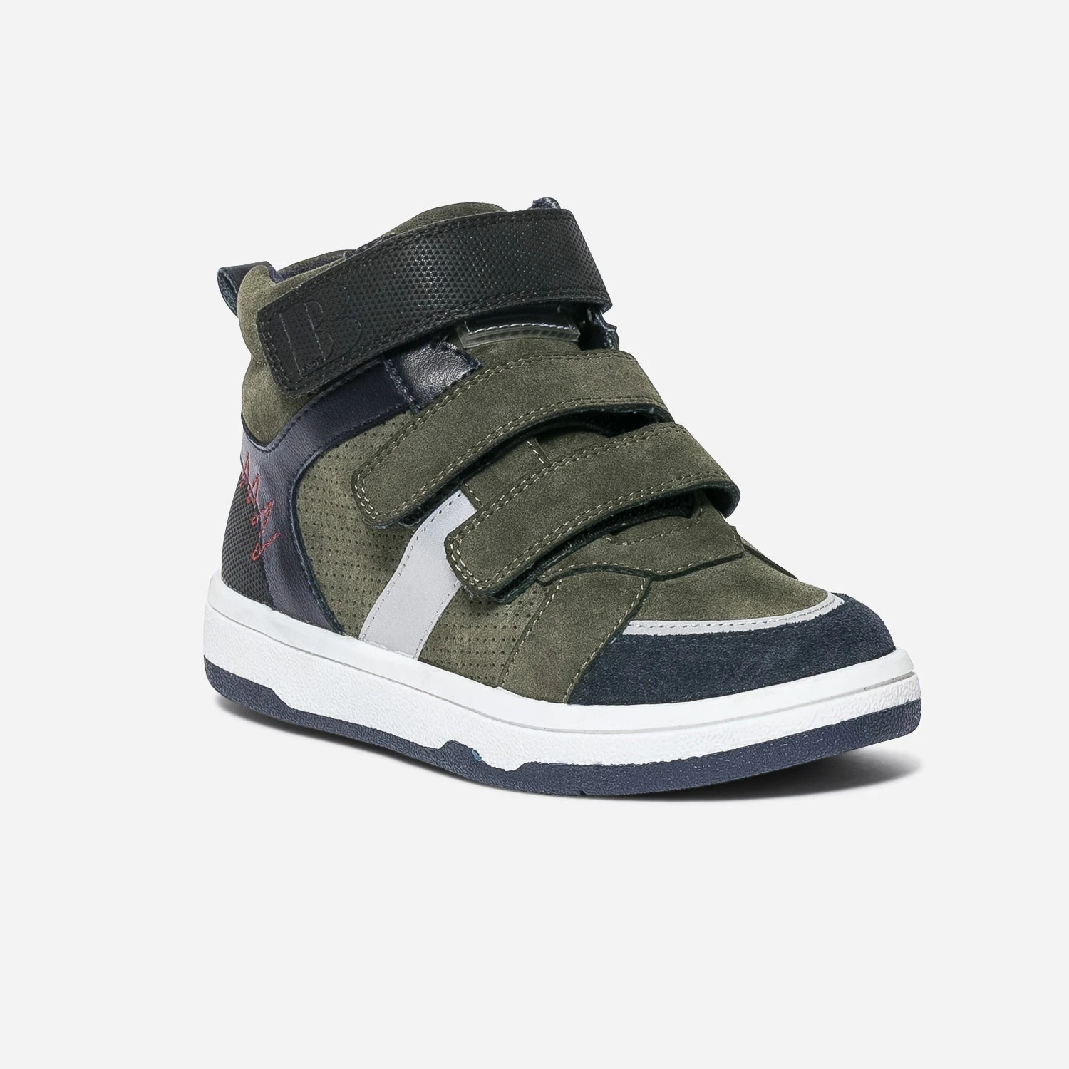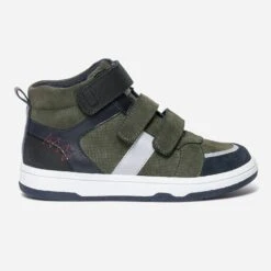 Il va d’abord craquer pour ses détails gris réfléchissants sur les côtés et le bout du pied. Il va ensuite préférer la fermeture par scratchs, qui lui permet de se débrouiller tout seul. Il va enfin adorer l’association de couleurs, kaki, bleu marine et noir. Une basket montante, qui ne manque décidément pas de caractère ni de style pour cet hiver.