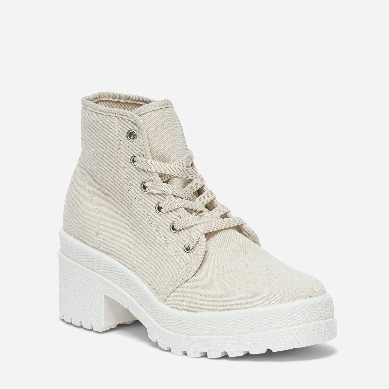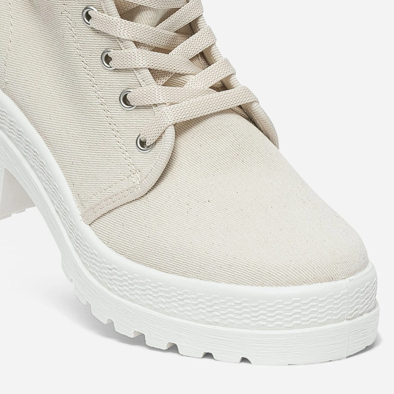 Finies les prises de tête devant le dressing de la mi-saison ! Cette basket femme upgrade tous les looks de la saison. En toile écrue, elle est montée sur une semelle à plateforme crantée et se ferme par un lacet ton sur ton. Un modèle d’inspiration militaire, à associer aussi bien avec une saharienne kaki et un jean, qu’avec un costume-short en lin et des chaussettes montantes.