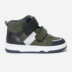 Il va d’abord craquer pour ses détails gris réfléchissants sur les côtés et le bout du pied. Il va ensuite préférer la fermeture par scratchs, qui lui permet de se débrouiller tout seul. Il va enfin adorer l’association de couleurs, kaki, bleu marine et noir. Une basket montante, qui ne manque décidément pas de caractère ni de style pour cet hiver.