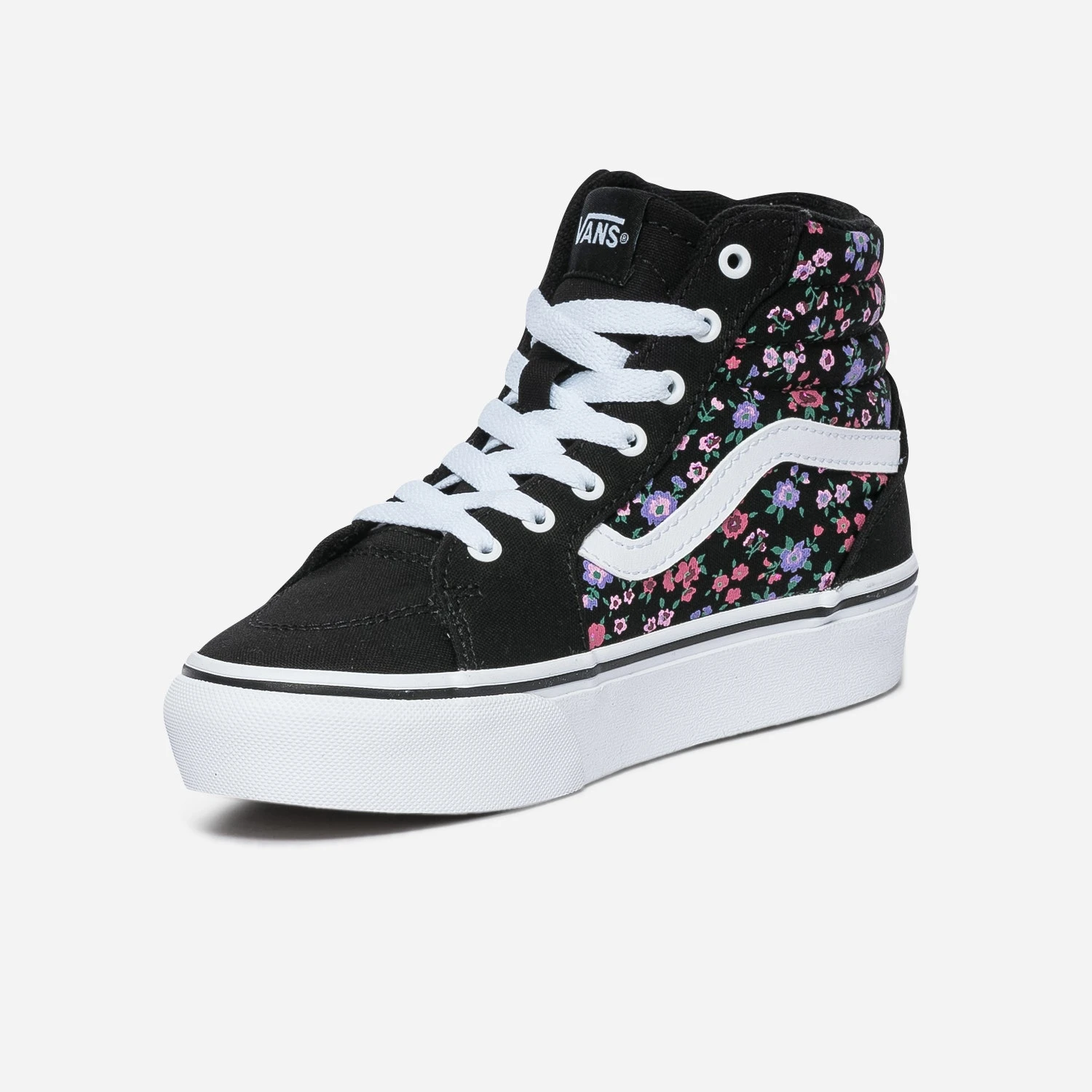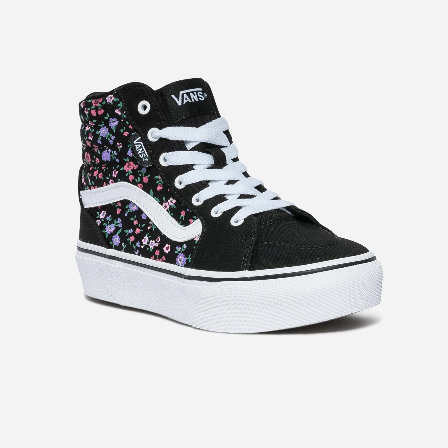Plébiscitée, à l’origine, par les amateurs de skateboard, la marque VANS a dépassé les frontières du sport pour s’affirmer comme un produit mode. Conçue en toile noire, cette basket pour fille est twistée, sur les côtés, des lignes blanches, signature emblématique de la marque, sur motif fleuri. La tige montante est matelassée pour un maximum de confort. Un modèle iconique, à réserver pour un look branché et décontracté.