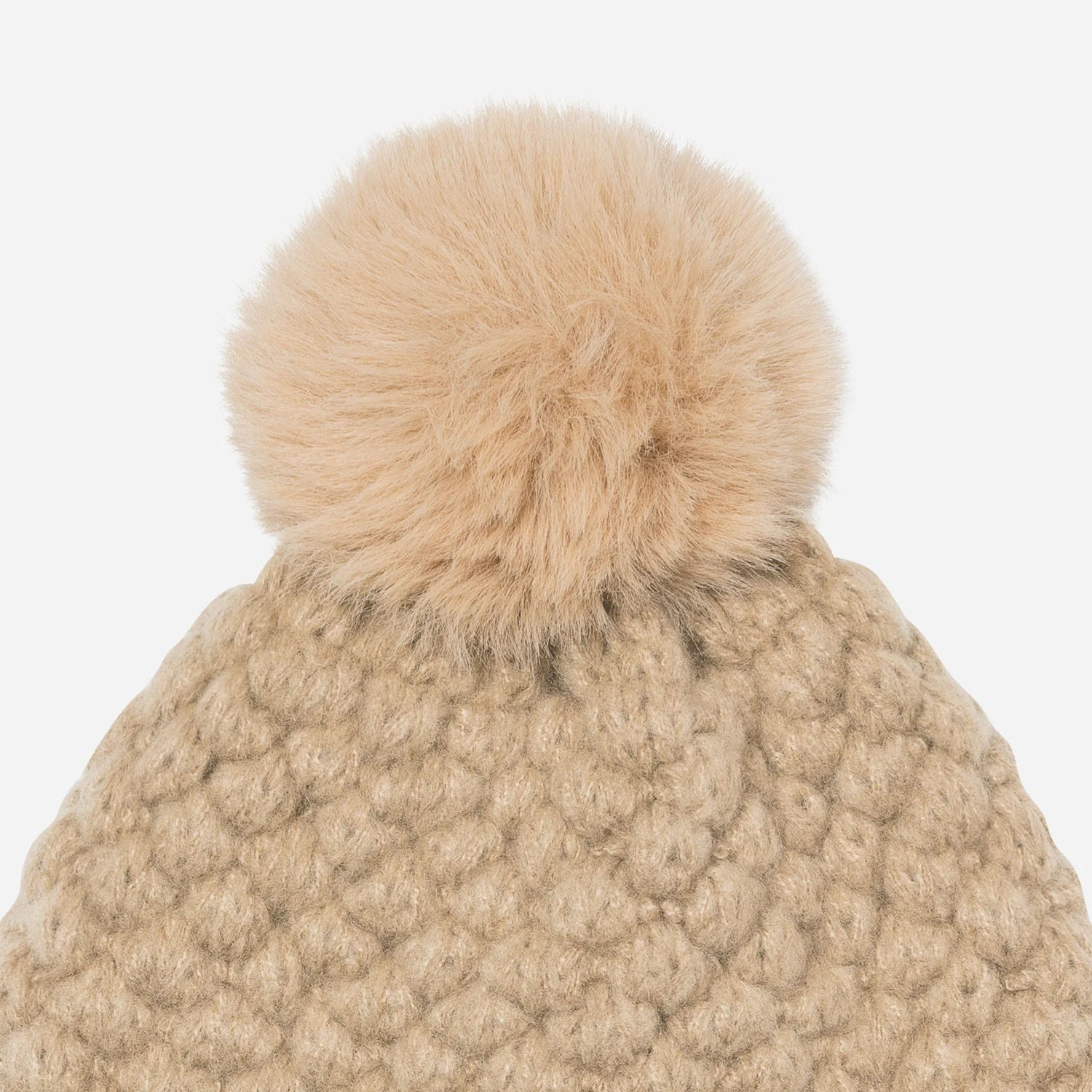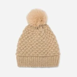 L’hiver et le bonnet, c’est une longue histoire. Et si vous ne l’aimiez pas beaucoup enfant, rassurez-vous, les goûts peuvent changer ! En tricot beige foncé, il se démarque par des points fantaisie et un gros pompon ton sur ton. Gardez-le à porter de main… et de tête !