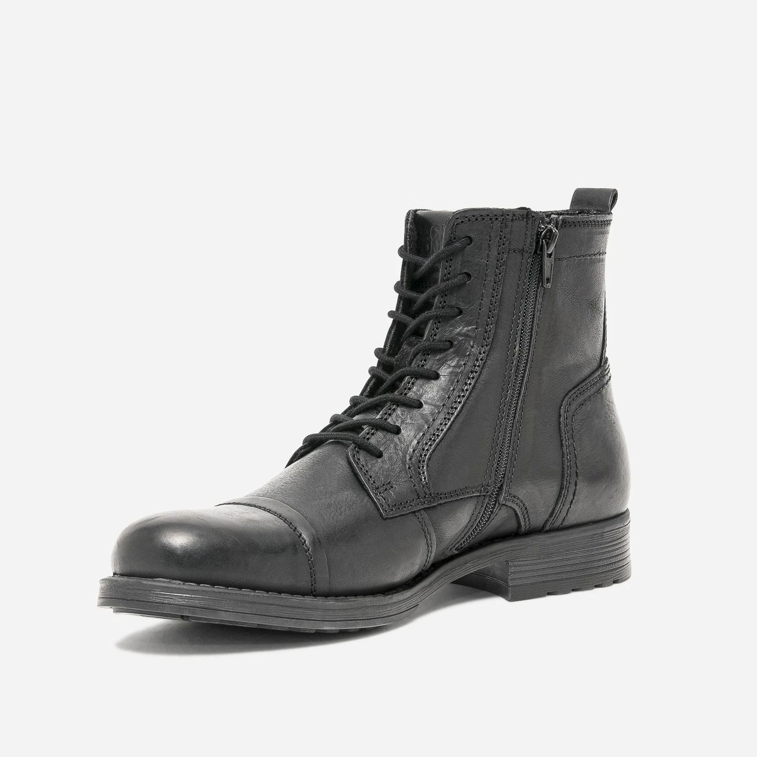 La marque JACK & JONES s’approprie le denim comme une signature identitaire. Ce boots pour homme, inspiré du rangers, se décline en cuir noir. La doublure et la semelle première sont, elles, en textile et synthétique. Le bout rapporté, renforcé par 16 œillets, lui apportent une belle authenticité. Un modèle mode pour un style casual affirmé.