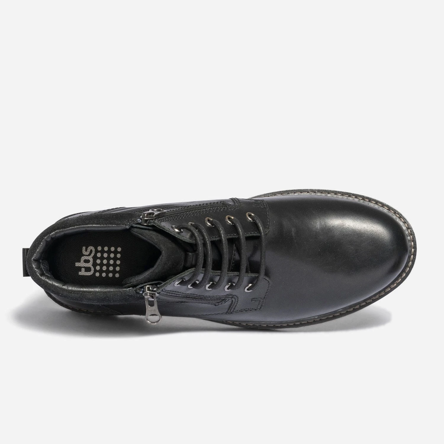 Née du sport, la marque TBS trouve son ancrage dans l’univers nautique. Légitime à terre comme en mer, ses produits sont reconnus pour leur confort. Passez en mode hiver avec ce boots pour homme. Conçu en cuir, il présente un empiècement en cuir velours sur le haut de la tige et de la languette. Deux zips, de part et d’autre du lacet, facilitent l’entrée et la sortie du pied. Noir, il se marie avec tout, looks rock, esprit militaire ou workwear.