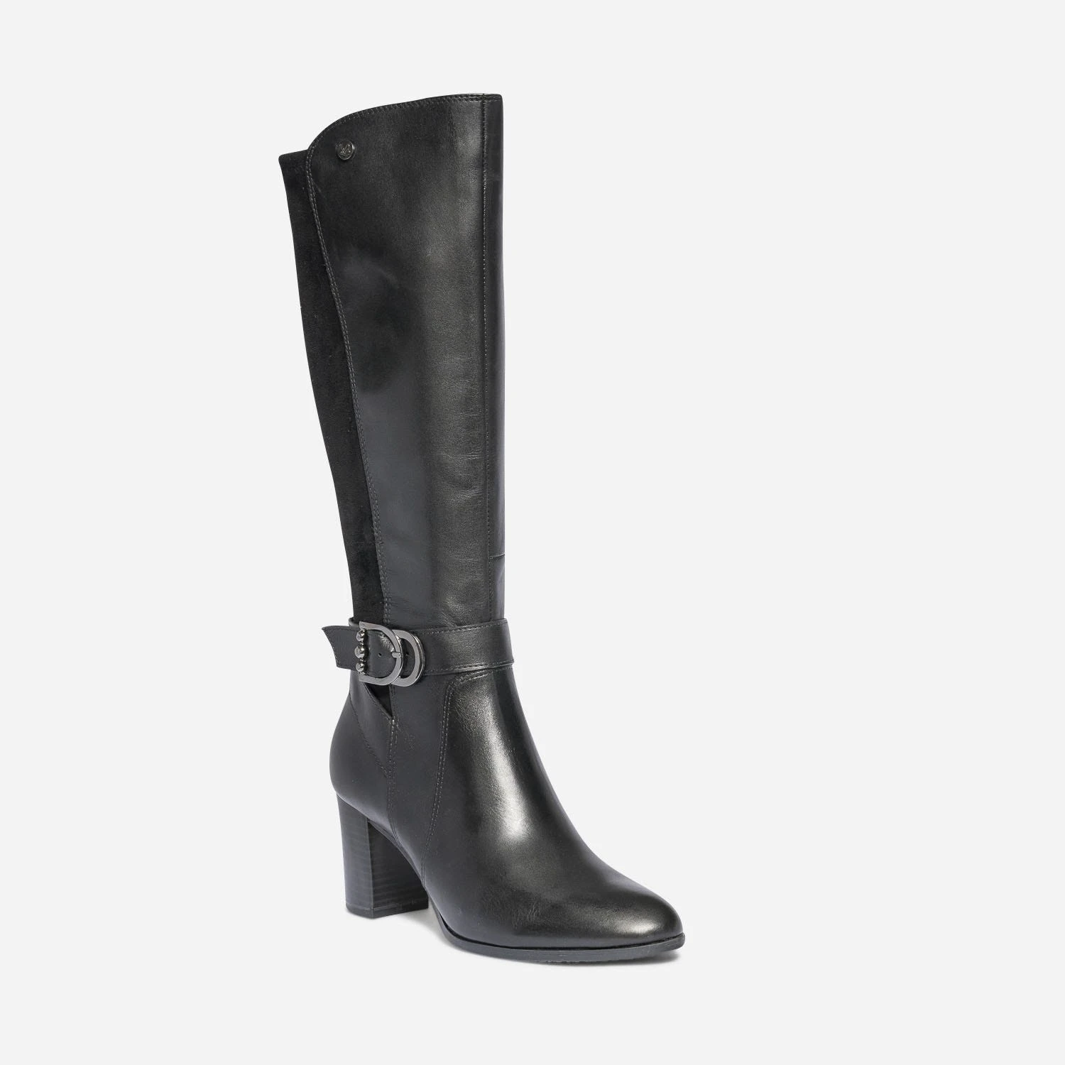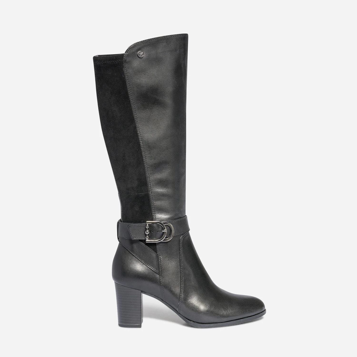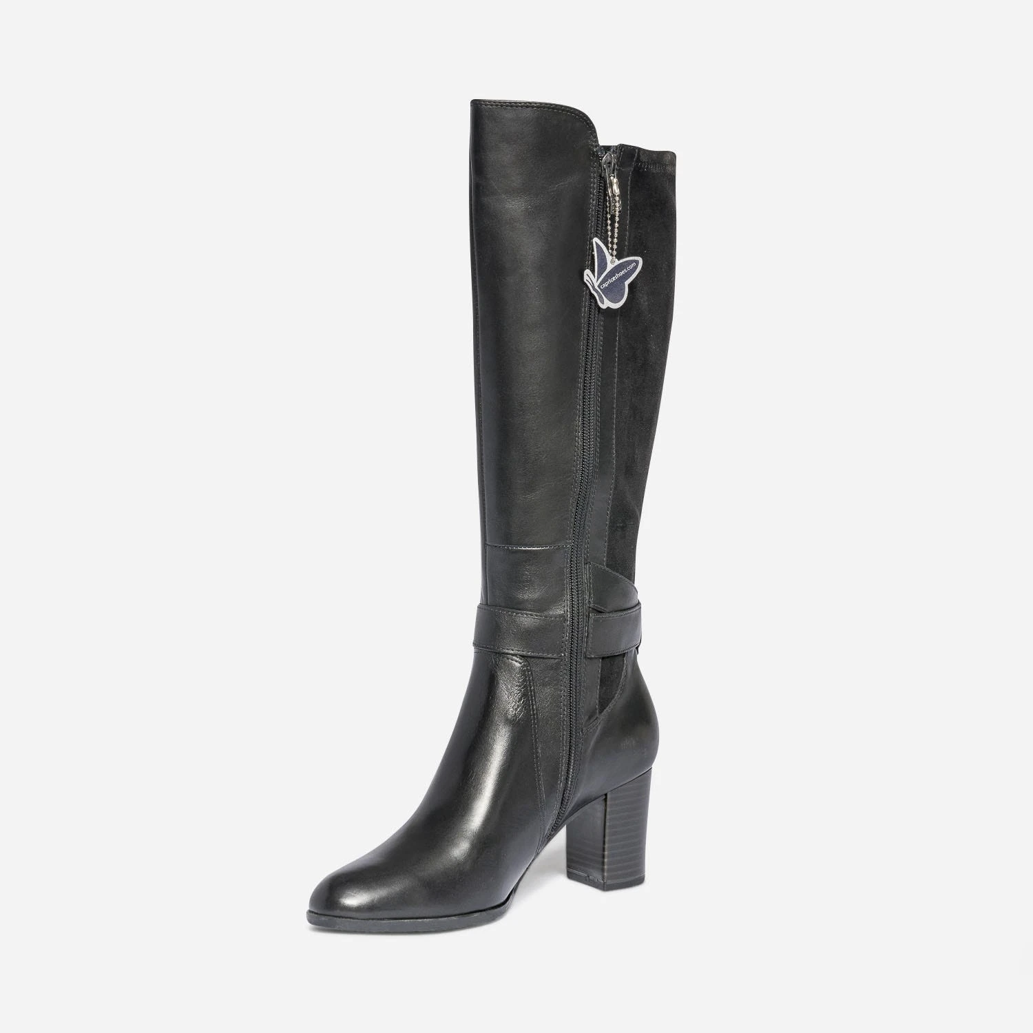 Spécialiste du bien-être, la marque CAPRICE propose des chaussures au confort incomparable. Cet hiver encore, la botte à la côte. En première ligne des podiums, elle séduit par sa tige haute animée d’un jeu bi matière, associant cuir lisse et textile dans une découpe bien pensée. La bride vient mettre en valeur la cheville, avec une double boucle en métal gun. Elle est montée sur un talon d’une hauteur idéale, qui ne ralentira pas votre quotidien.