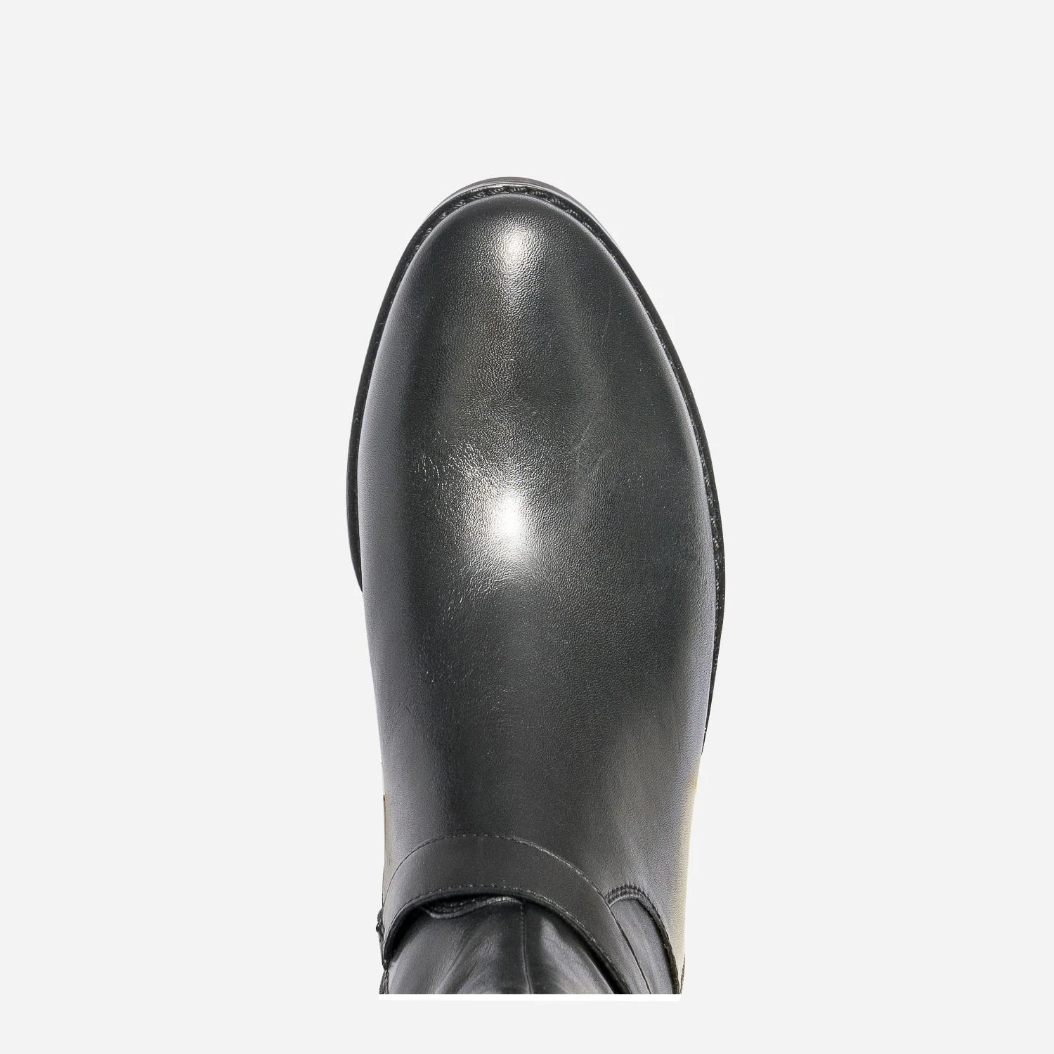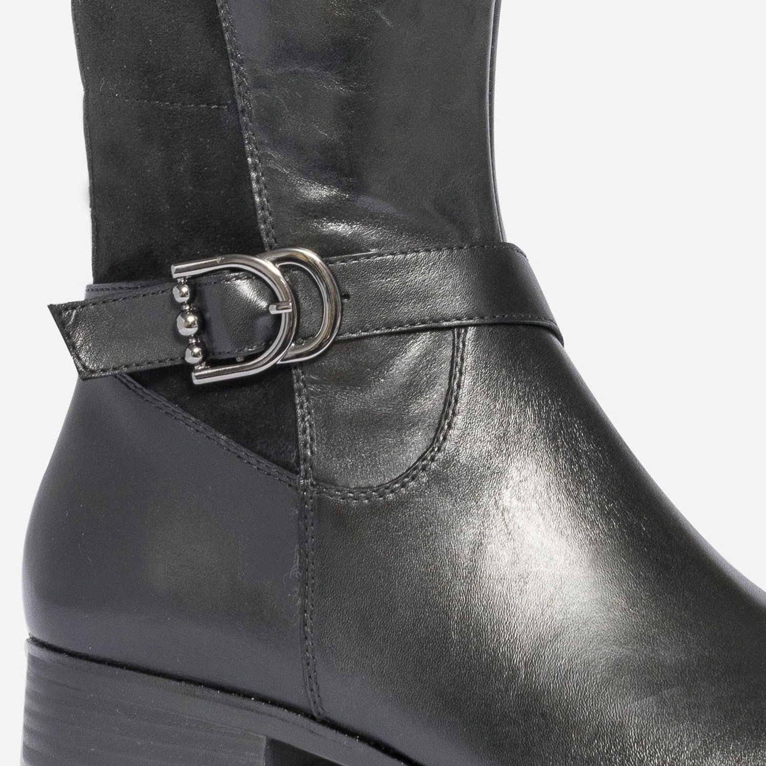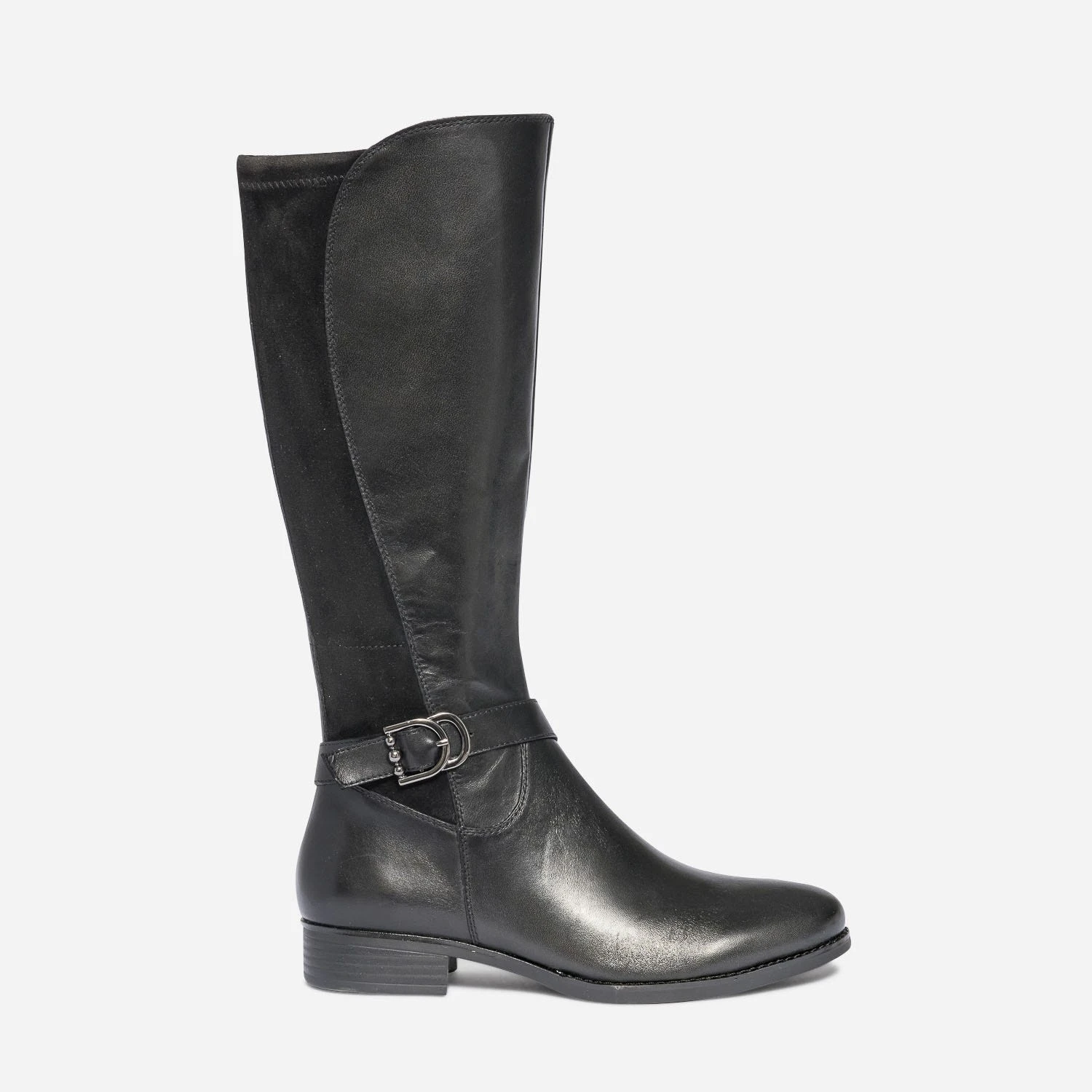 SpĂ©cialiste du bien-ĂŞtre, la marque CAPRICE propose des chaussures au confort incomparable. Cet hiver encore, la botte Ă la cĂ´te. En première ligne des podiums, elle sĂ©duit par sa tige haute animĂ©e d’un jeu bi matière, associant cuir lisse et textile dans une dĂ©coupe bien pensĂ©e. La bride vient mettre en valeur la cheville, avec une double boucle en mĂ©tal gun. Elle est montĂ©e sur un talon plat, facile Ă porter au quotidien.