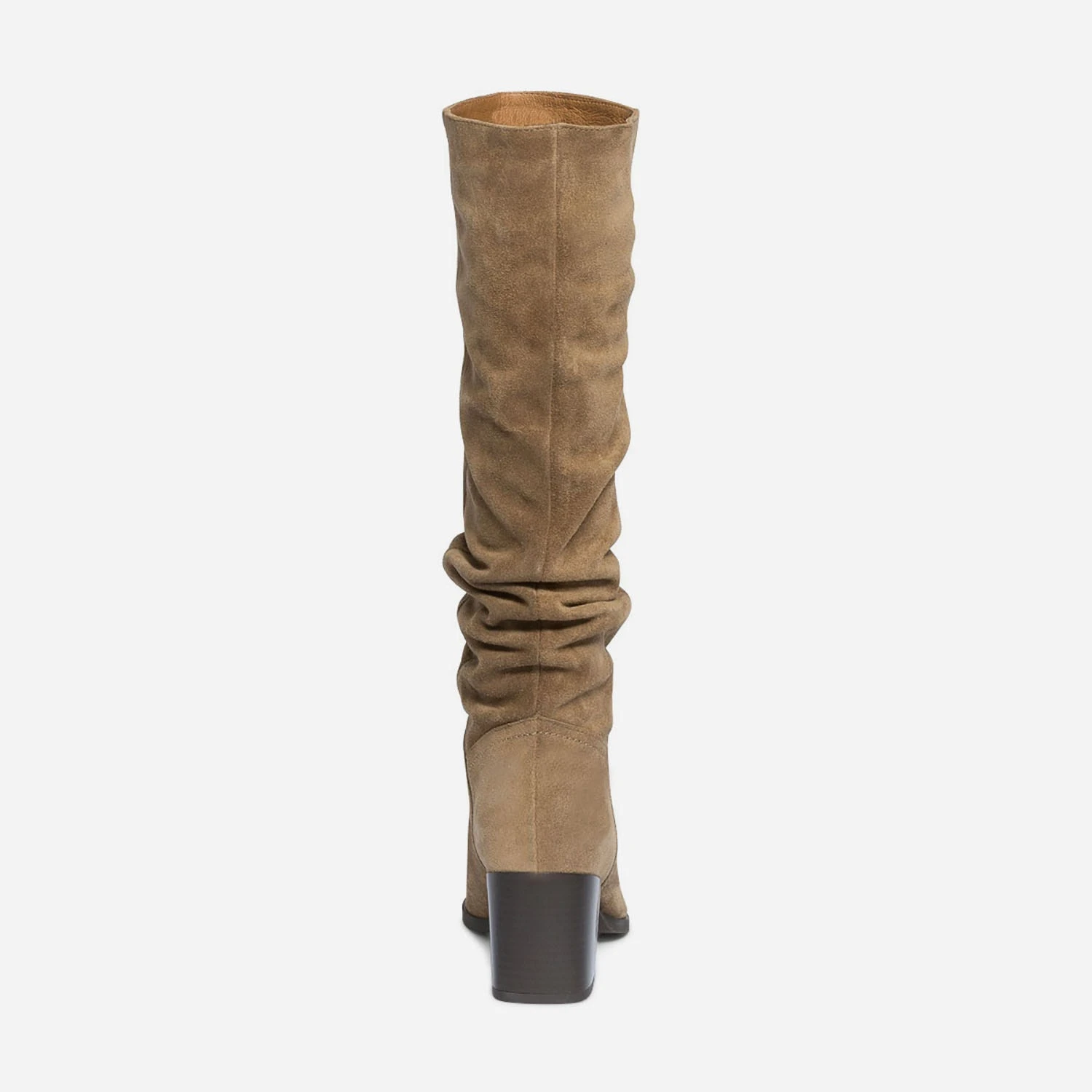 Botte TEXTO Taupe En Cuir Velours éco-conçu à Tige Plissée