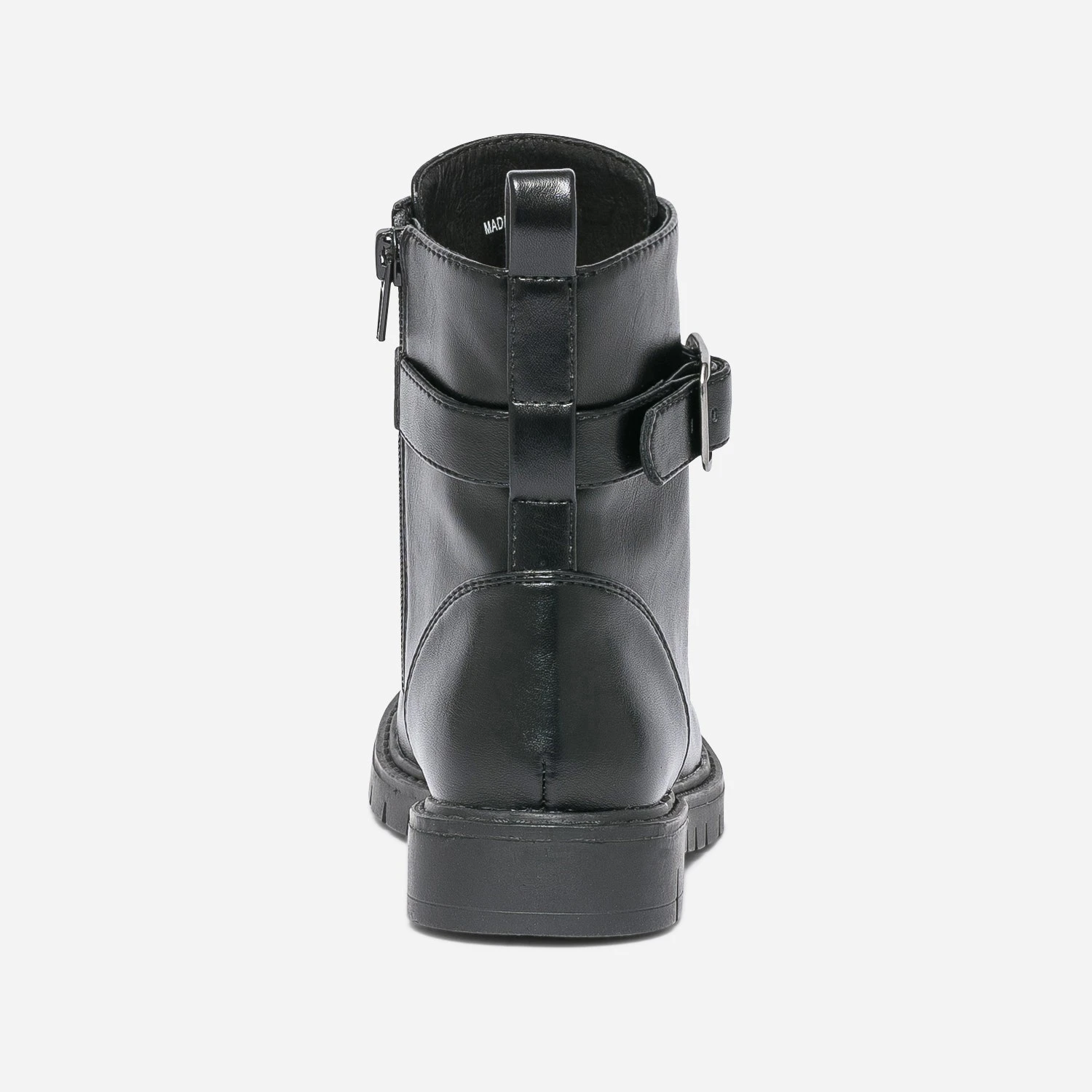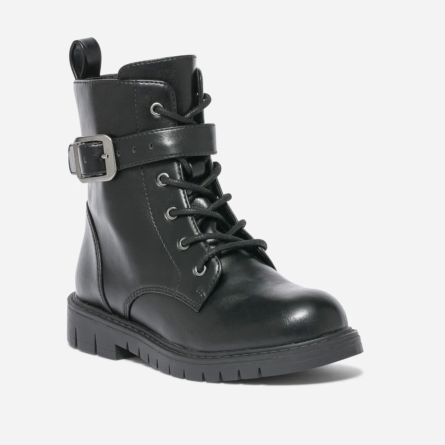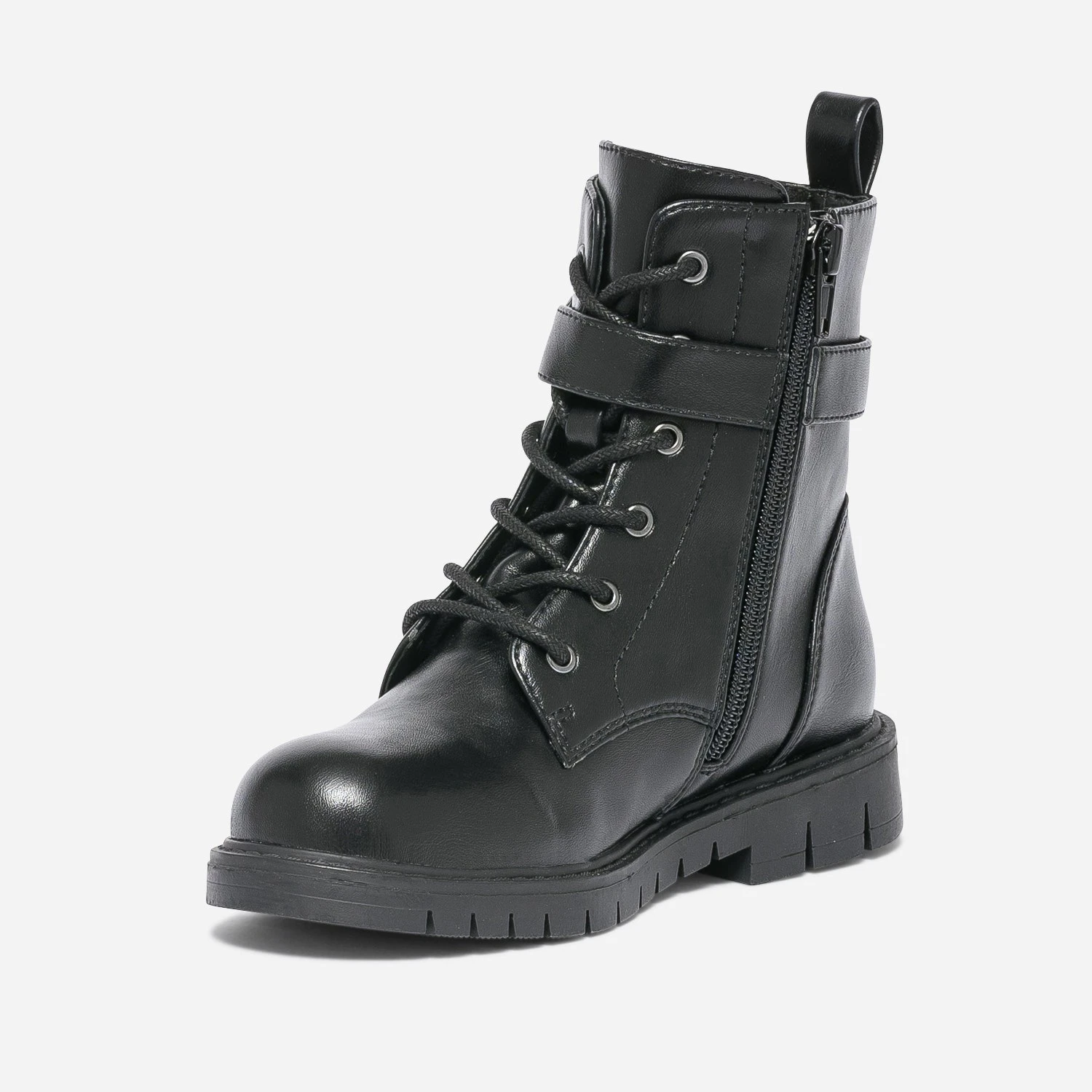 Loin de nous l’envie de faire marcher les enfants au pas. Pourtant cette bottine militaire est un modèle incontournable de la saison. Tige montante lacĂ©e et zippĂ©e, semelle crantĂ©e, elle prĂ©sente mĂŞme une bride Ă boucle sur la cheville. En matière synthĂ©tique noire, elle sera l’alliĂ©e des filles de la maison Ă la cour de rĂ©crĂ©.Â