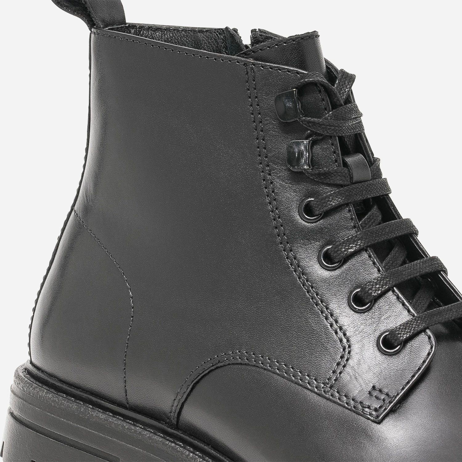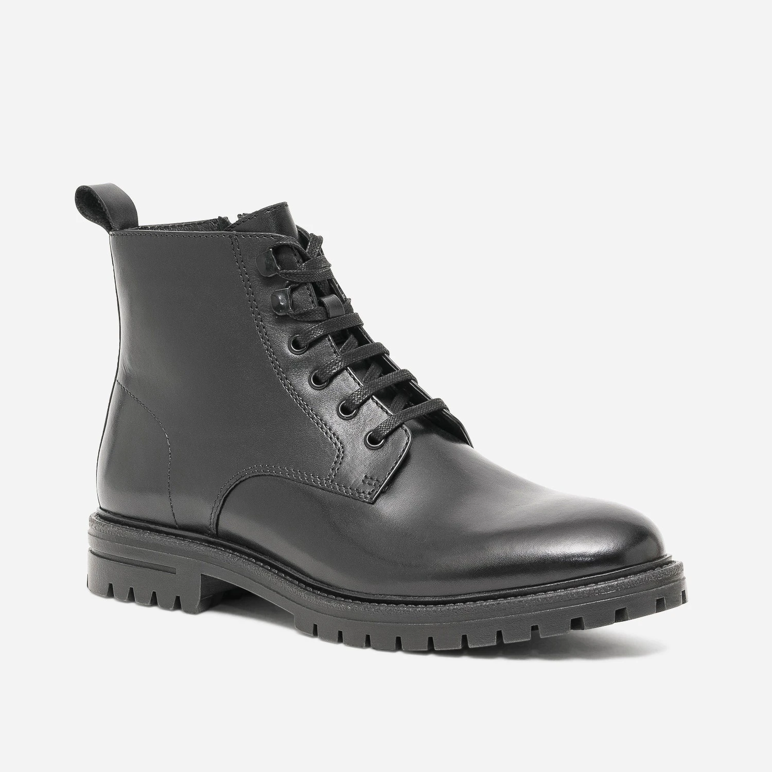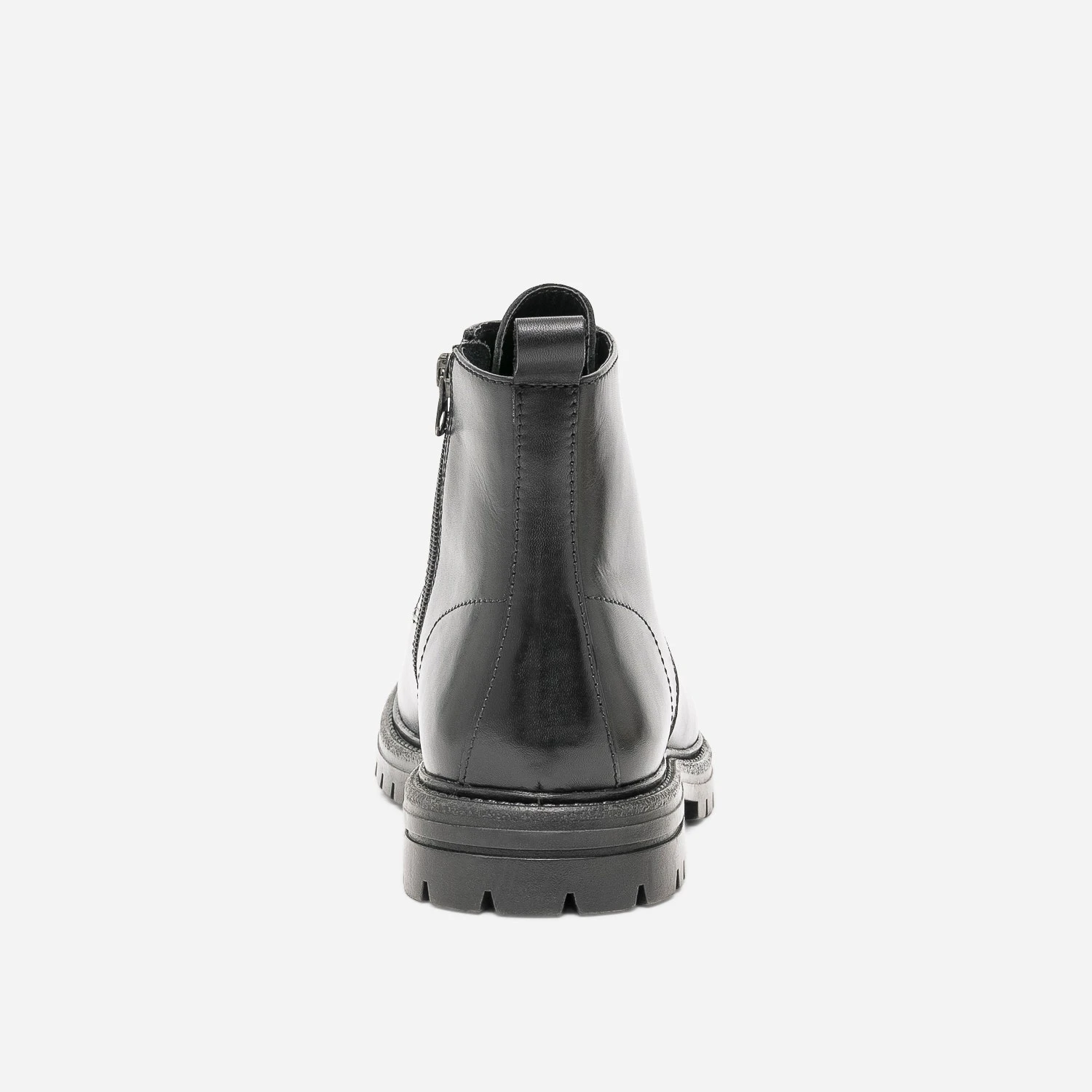 Imposez le style militaire comme un style à part entière. Modernisée par un cuir lisse, elle se décline en coloris noir sur une semelle crantée ton sur ton. Le laçage est finalisé par des œillets fantaisie inspiré par l’univers de la montagne. Un modèle facile à porter tout au long de la saison.