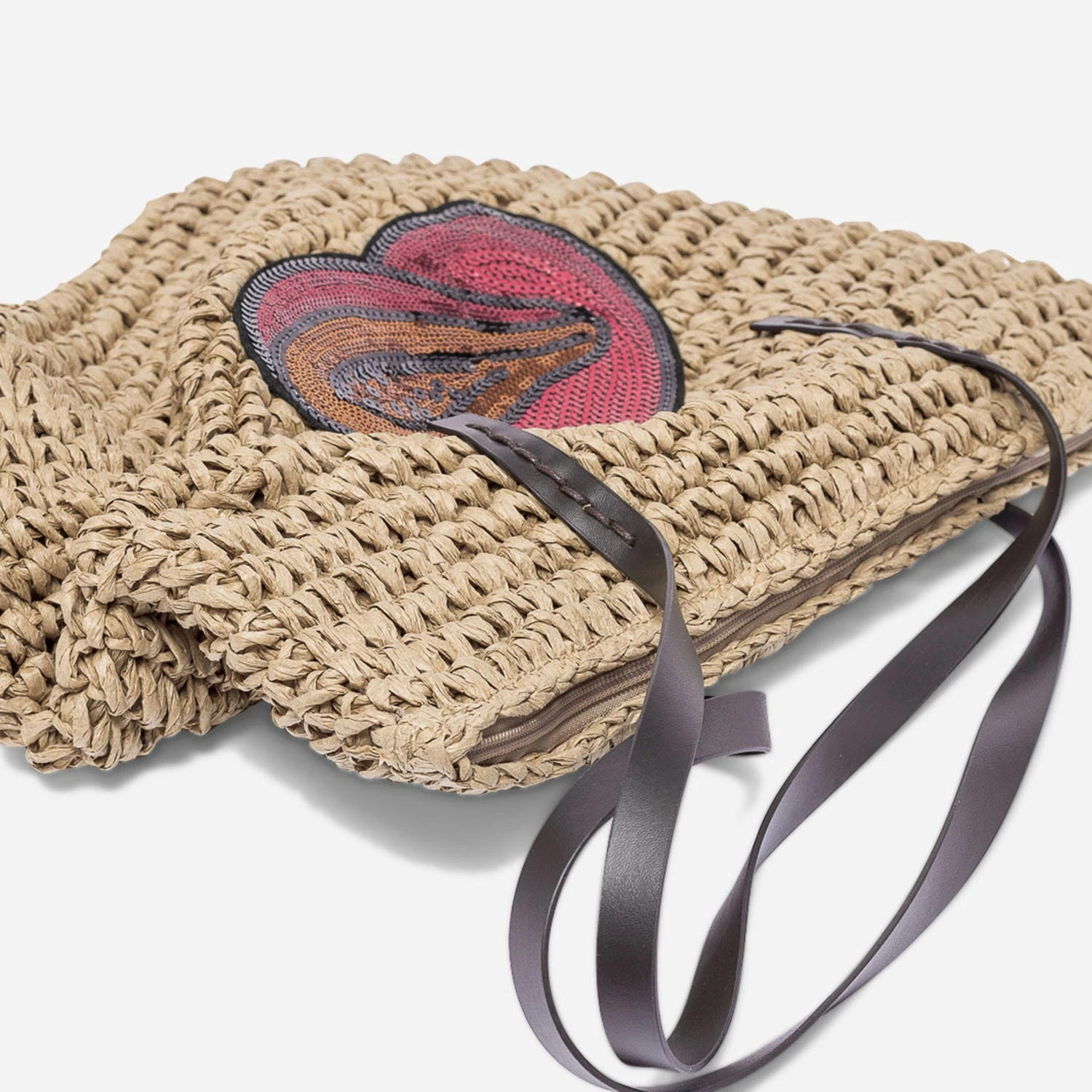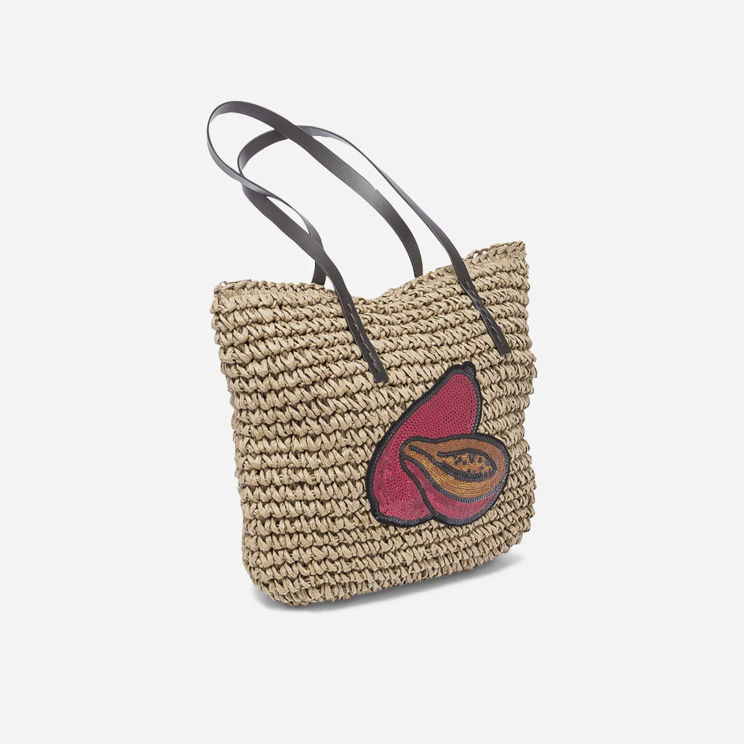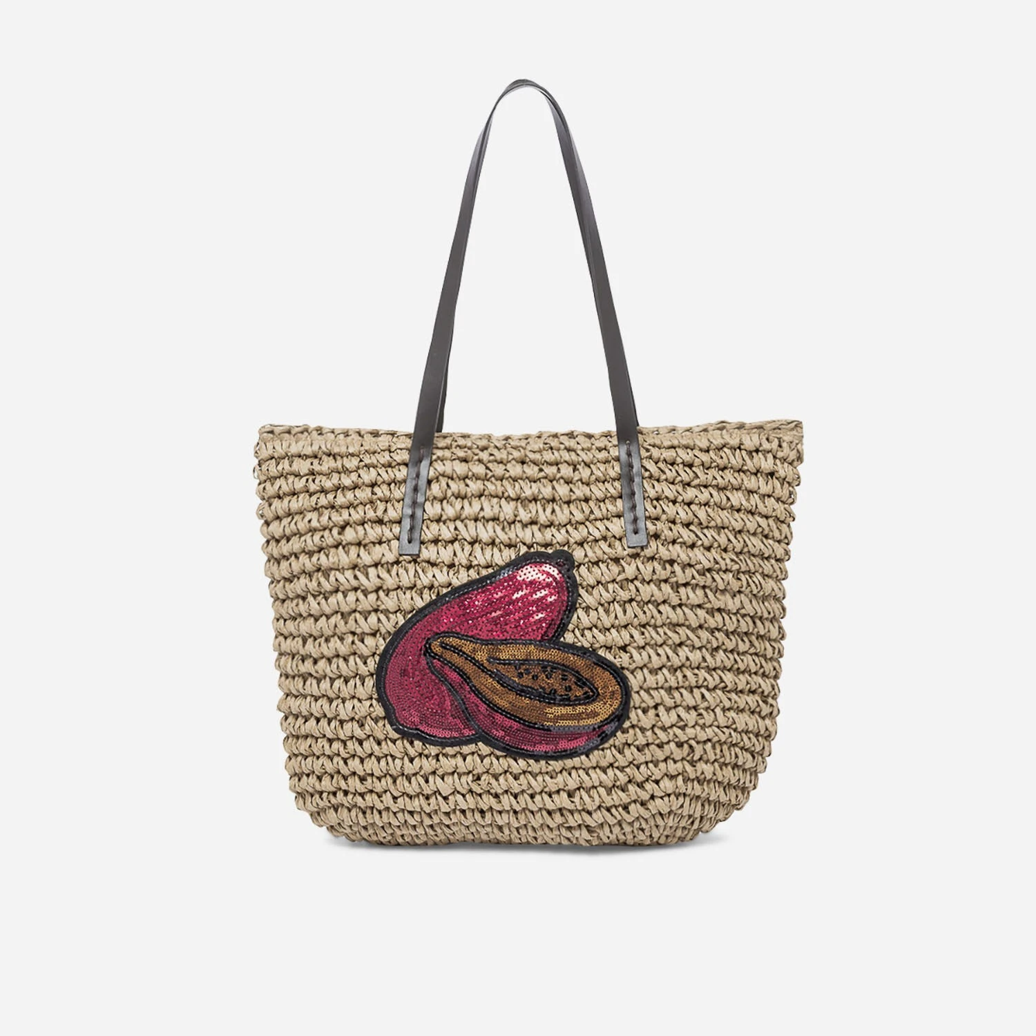 Et si le nouveau sac à main, c’était le cabas en papier imitation raphia ? Ce modèle est un must-have de notre été ! Entièrement tressé, il est doublé de coton en ton sur ton. Son petit plus : c’est le patch papayes brodées de sequins rouge, orange et noir métallisés. Un cabas fashion qui va nous suivre tout l’été, du bureau aux soirées improvisées !