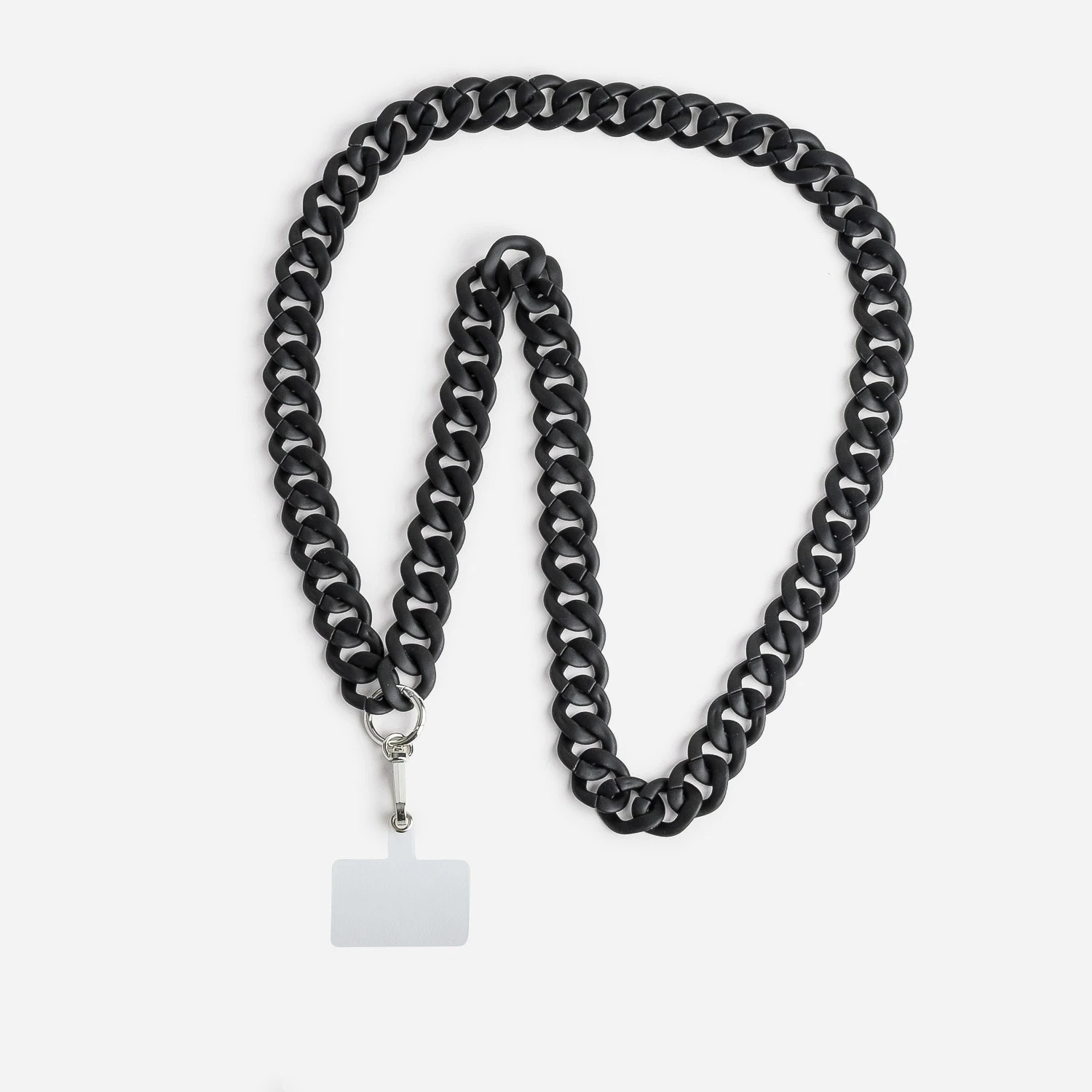Composée de gros maillons, coloris noir et finition mate, cette chaîne-bijou est étudiée pour porter, votre téléphone portable, autour du cou. Fonctionnelle et stylée, elle permet de l’avoir toujours à portée de main, sans vous encombrer les mains.