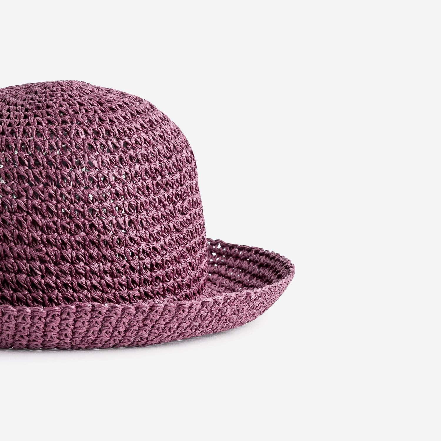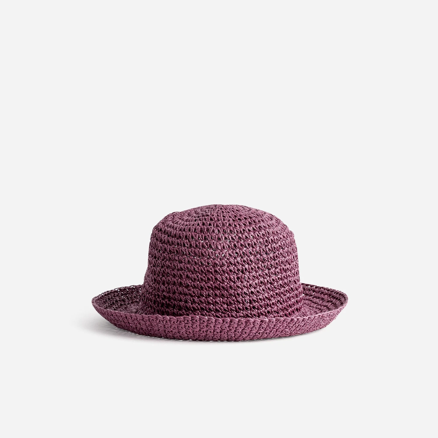 Accessoire féminin très à la mode pendant les années folles, le cloche, ou chapeau cloche, est reconnaissable à sa calotte ronde non creusée et à ses bords plus ou moins longs. Pour la saison estivale, il se réinvente en 100% papier imitation raphia tressé, dans un joli coloris prune. Un modèle à associer avec un top en macramé et un pantalon large, dans les tons pastel.