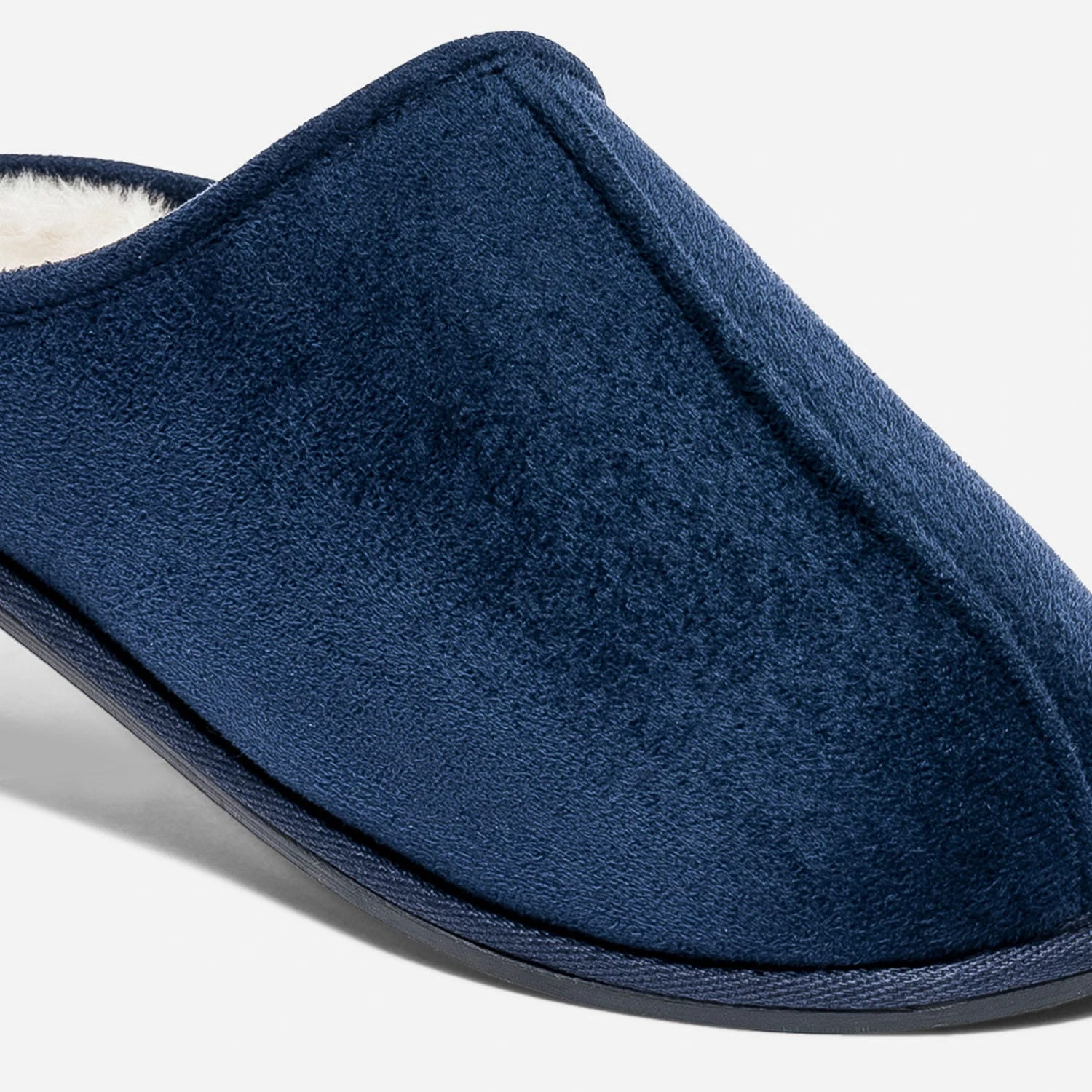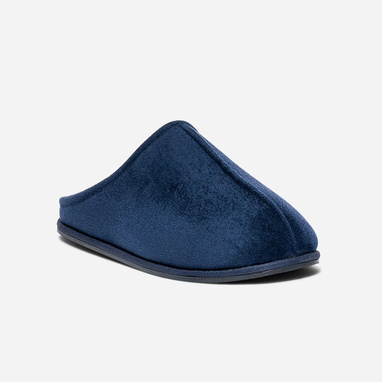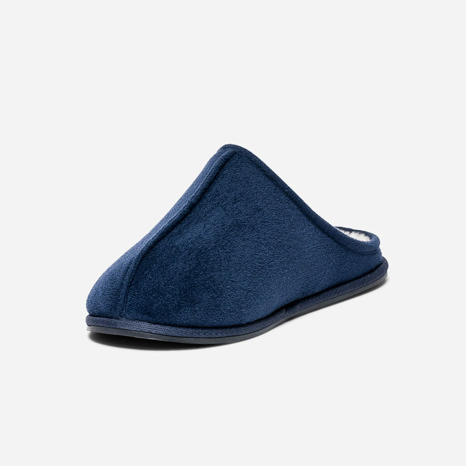 Quel est le meilleur moment quand on rentre chez soi en hiver ? Enfiler ses chaussons. Faites l’expérience de ce modèle forme mule, d’une douceur incomparable. Confectionné entièrement en textile, il se décline en coloris bleu marine, avec doublure beige en fourrure synthétique. Un pur bonheur pour les pieds !