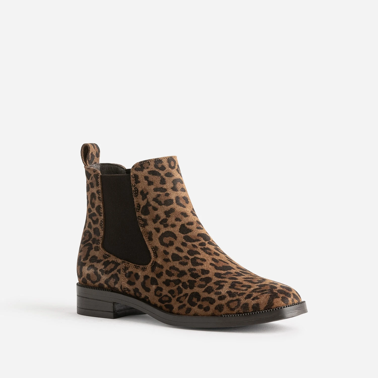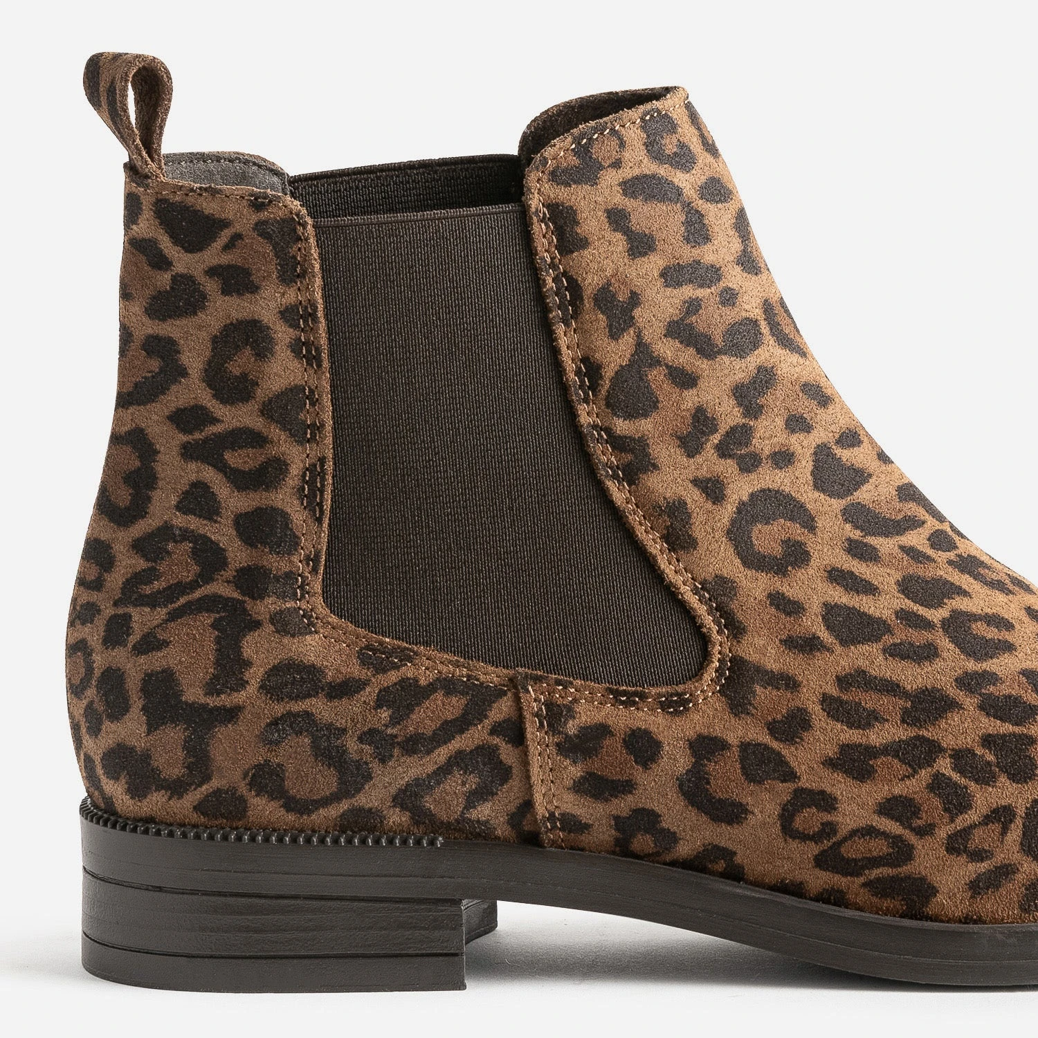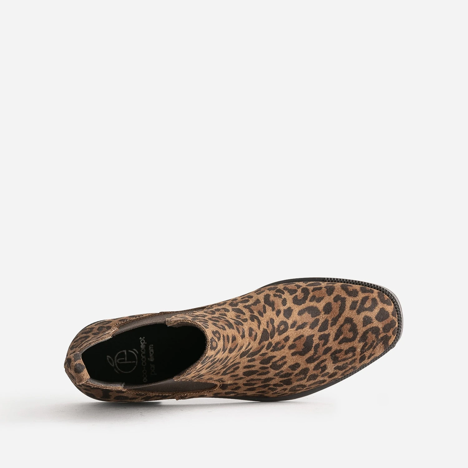 Chelsea Boots Camel éco-conçu Cuir Velours à Motif Léopard