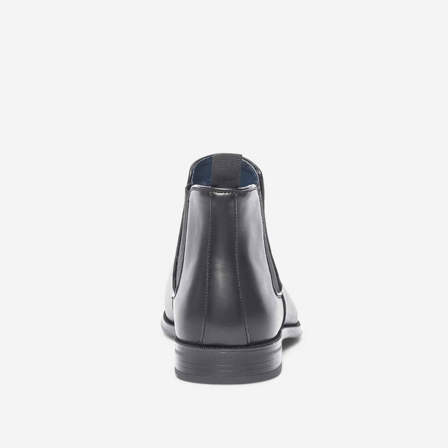 Il est classique. Il est intemporel. Il est indémodable. Le Chelsea boot squatte le shoesing des hommes, saison après saison. Confectionné en cuir synthétique noir, il présente des élastiques latéraux ton sur ton et se fait remarquer par une doublure et une première en cuir… bleu électrique ! Un modèle qui maîtrise la fantaisie juste comme il faut, avec un costume noir, une chemise blanche et une pochette ou cravate colorée.