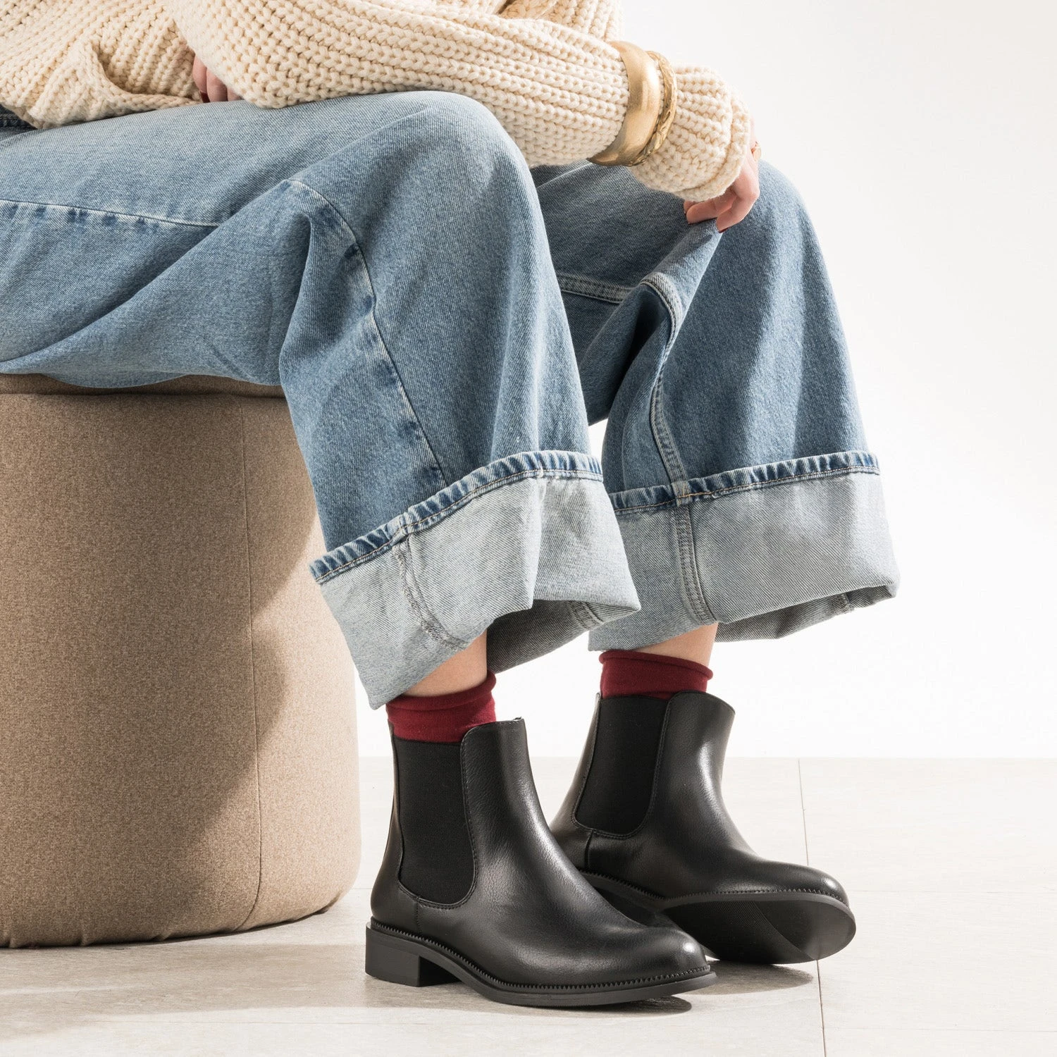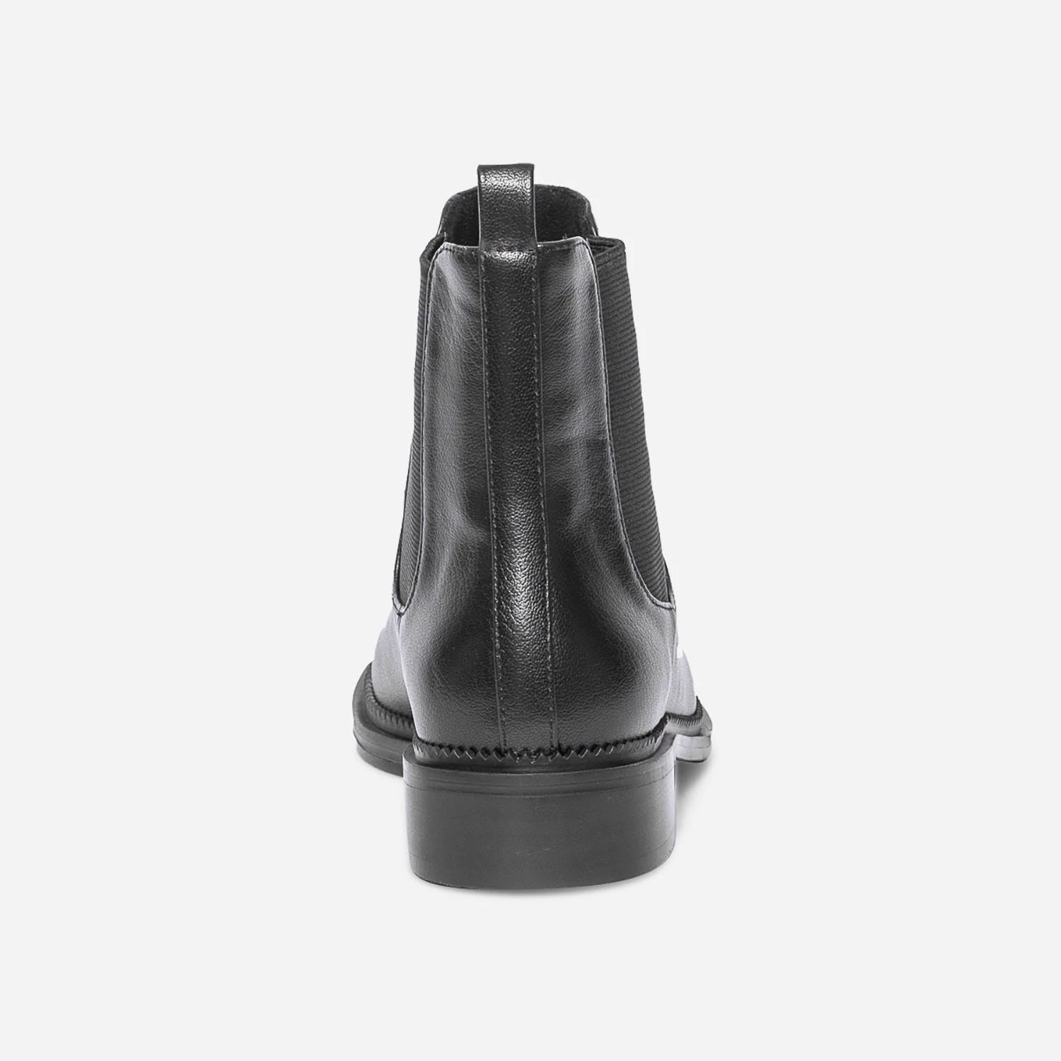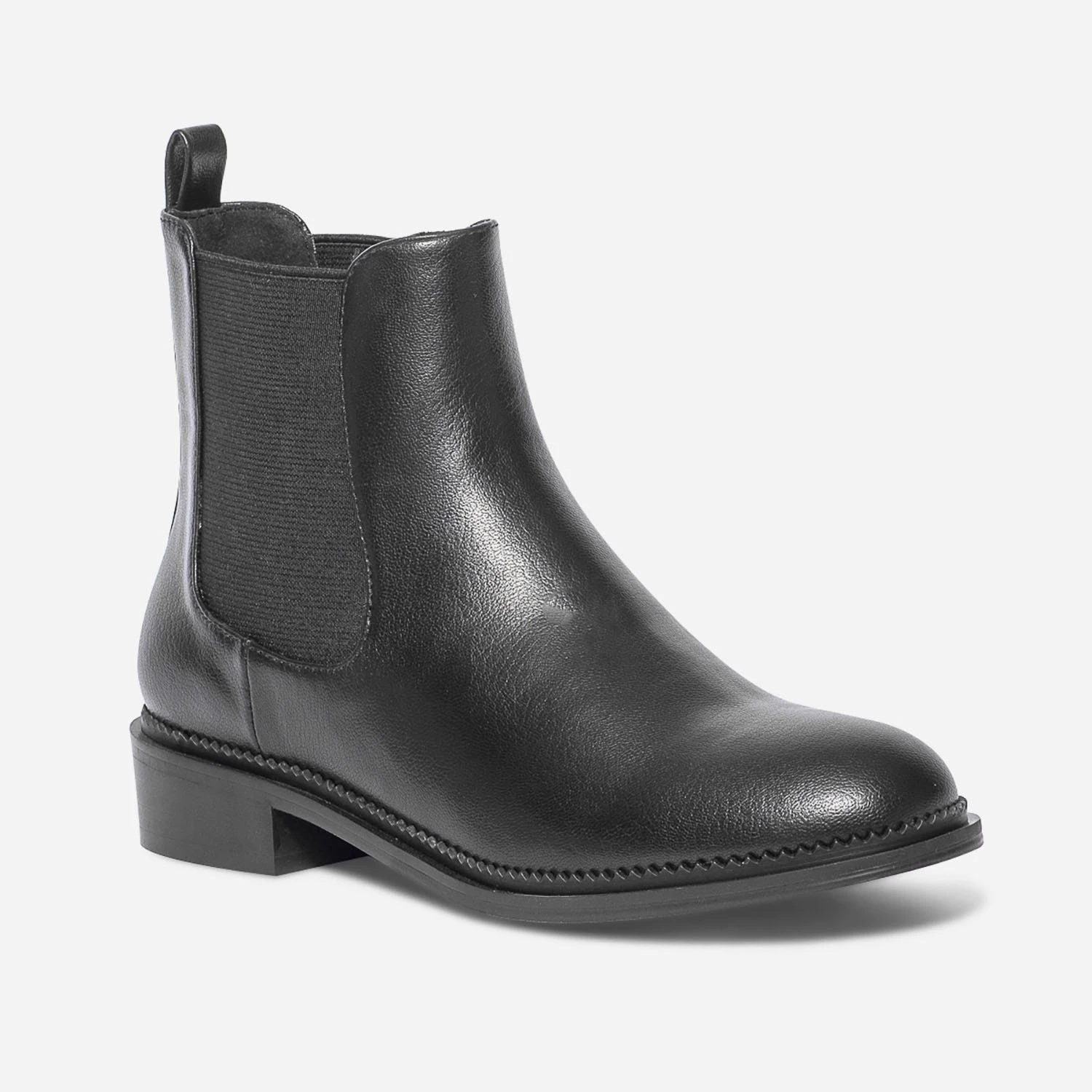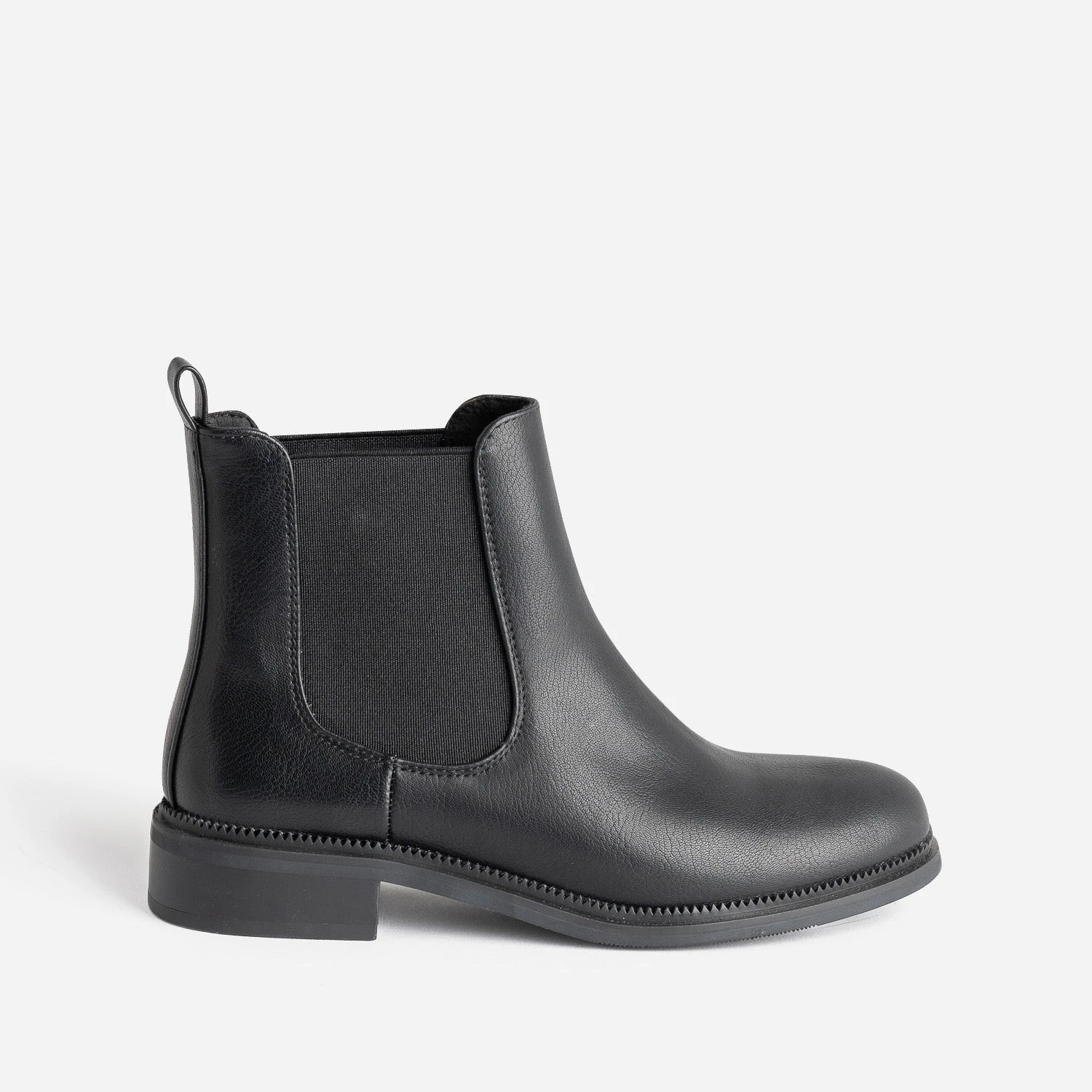 Gagnez du temps chaque matin ! Comment ? Grâce Ă ce Chelsea boots femme qui va vraiment faciliter votre quotidien ! Sa ligne très simple comprend une tige en cuir synthĂ©tique avec deux Ă©lastiques latĂ©raux, une doublure en textile et une semelle première en cuir. Entièrement noir, il s’enfile en un clin d’œil, notamment avec vos jeans et pantalons forme chino.