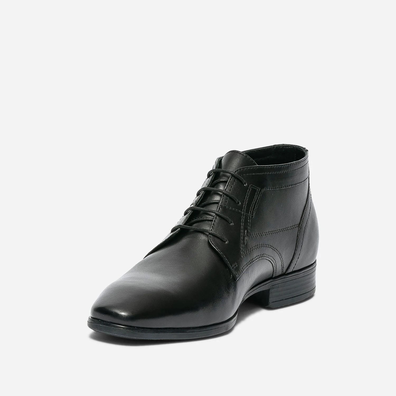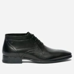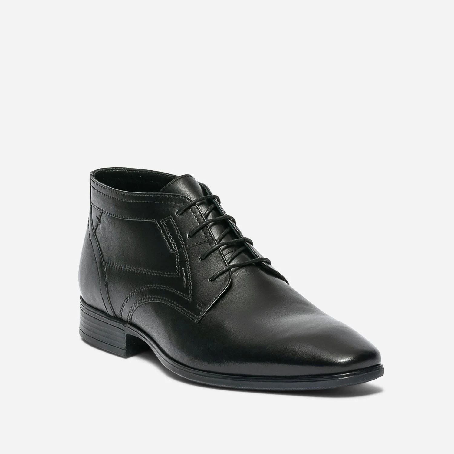 Ce Chukka boots est un essentiel du shoesing masculin. En cuir, il se décline en coloris noir, sobre, intemporel et élégant, sur une ligne épurée avec bout carré. Doublure en cuir et textile, première en cuir, il promet un confort absolu. Un modèle facile à porter avec tous les looks du quotidien.