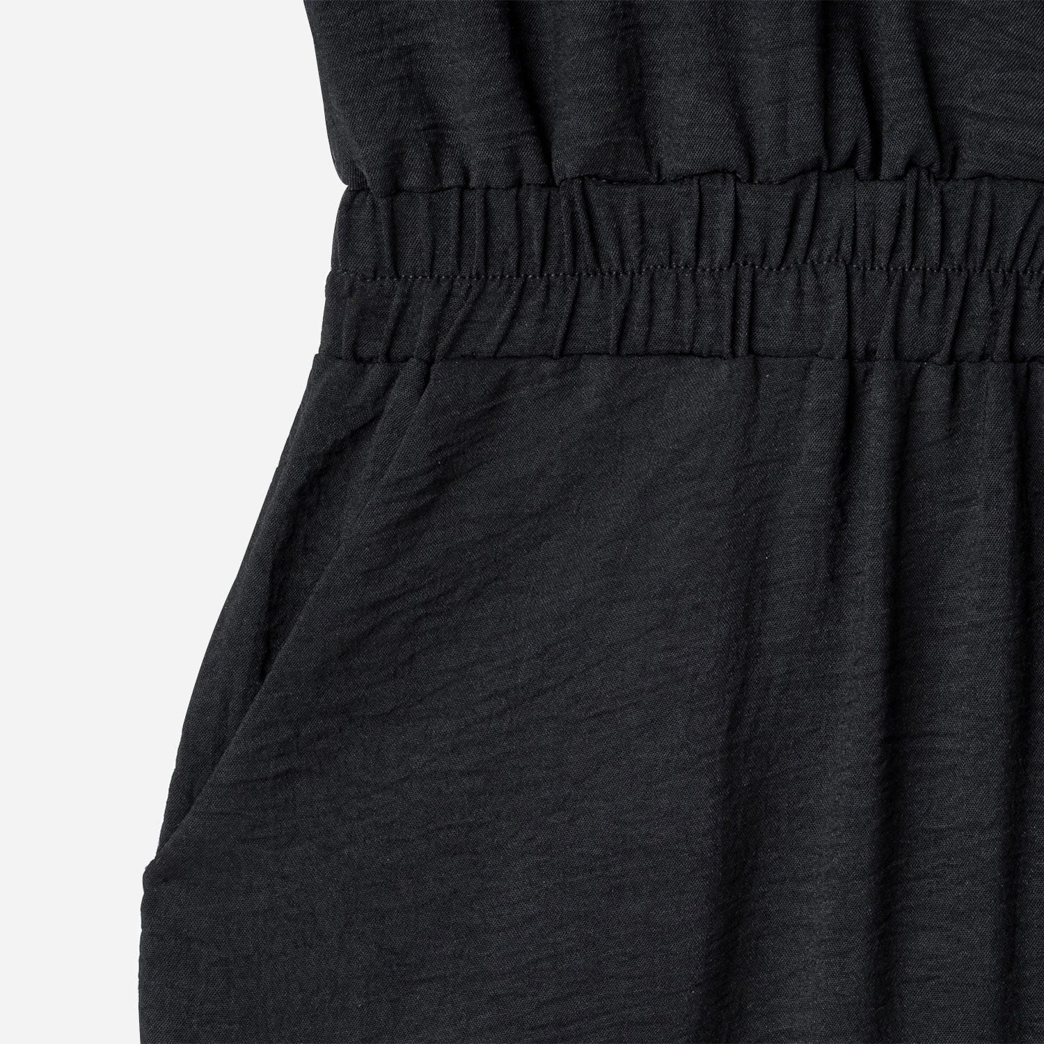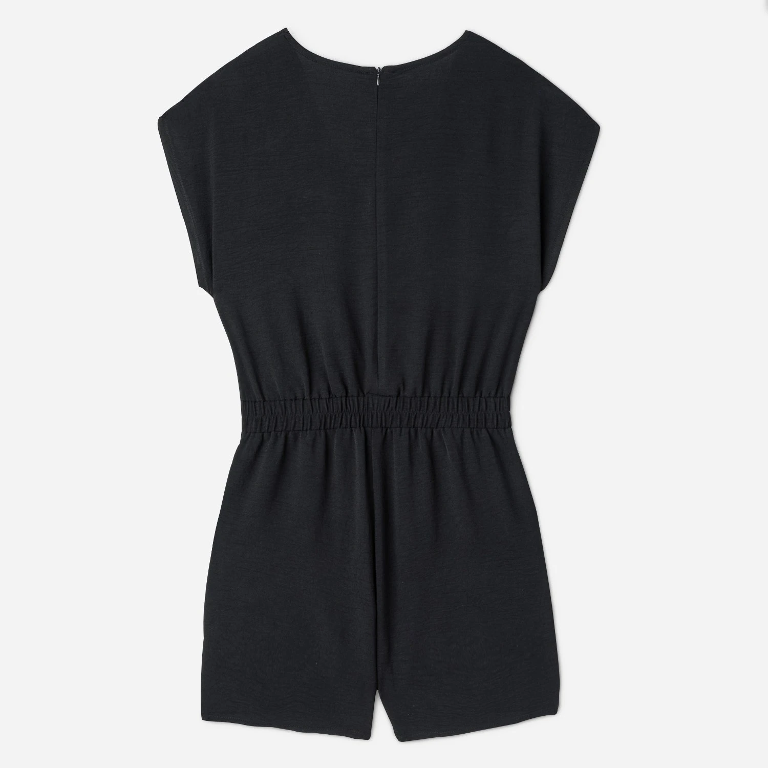 Il est sur tous les podiums. Le combi short s’invite en ville, parce qu’il démontre qu’il sait se tenir extrêmement bien, dans tous les rendez vous de la journée. En polyester légèrement gaufré, il séduit par sa légèreté et sa fluidité. Le haut, forme cache-cœur, s’associe à une taille élastiquée à smocks pour un maximum de confort. Noir, il est aussi à l’aise en journée qu’en soirée, avec des sandales plates ou à talon.