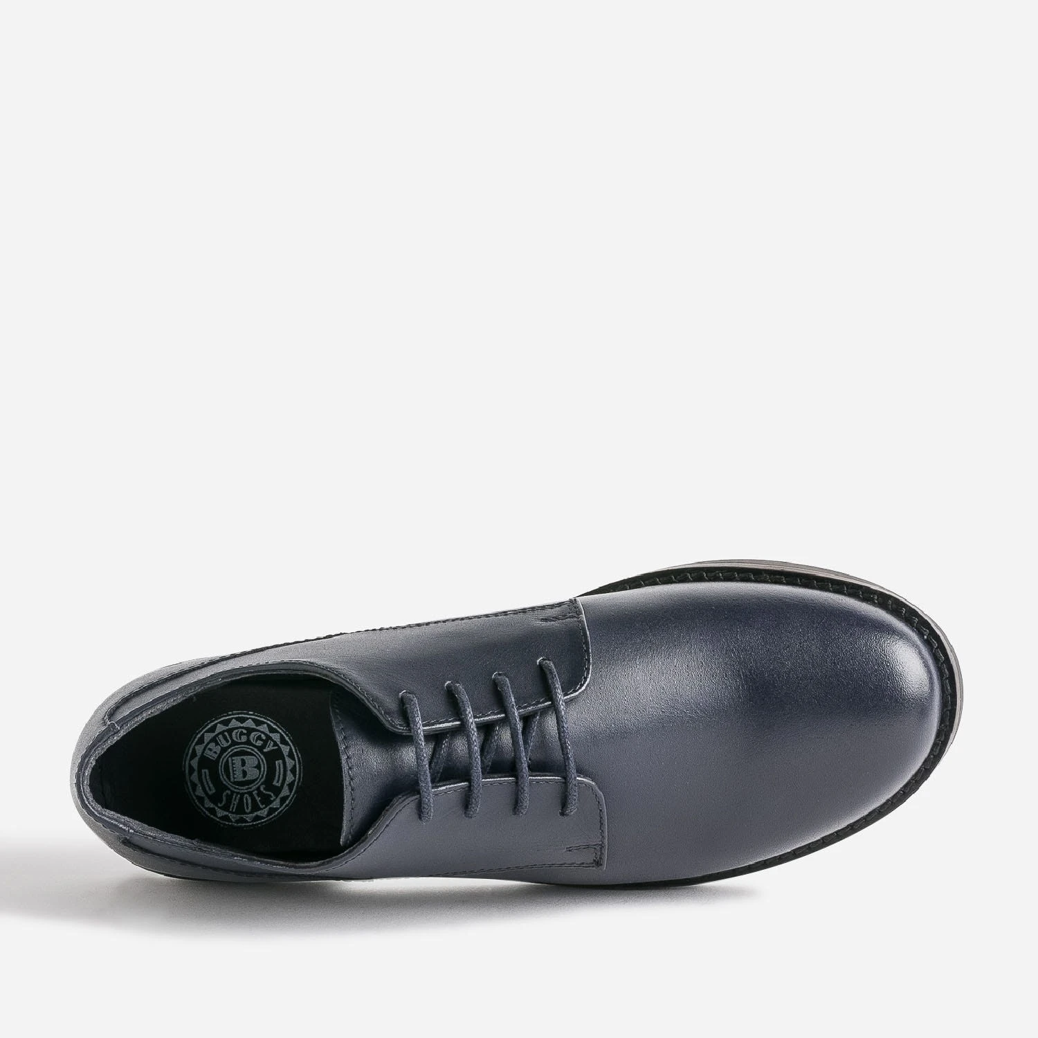 Le derby est un soulier parfait pour finaliser un look formel, pour une cérémonie par exemple. En cuir bleu marine, il se ferme par un lacet rond ton sur ton. Un modèle pour garçon à associer avec une chemise blanche et un costume bleu marine, ou bien un polo et un bermuda.