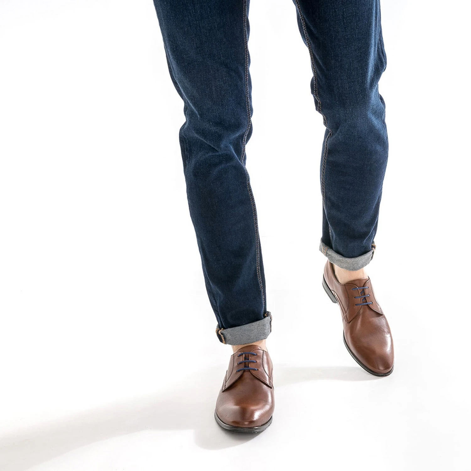Tige en cuir, doublure bi matière cuir et textile, première en cuir : ce derby homme se démarque par une souplesse renforcée, qui garantit un confort inégalé. Coloris cognac, il est twisté d’un lacet rond et ciré de couleur bleue, apportant une belle modernité. Un modèle pensé pour être porté au quotidien, avec une tenue plutôt formelle, costume ou chemise et pantalon chino.