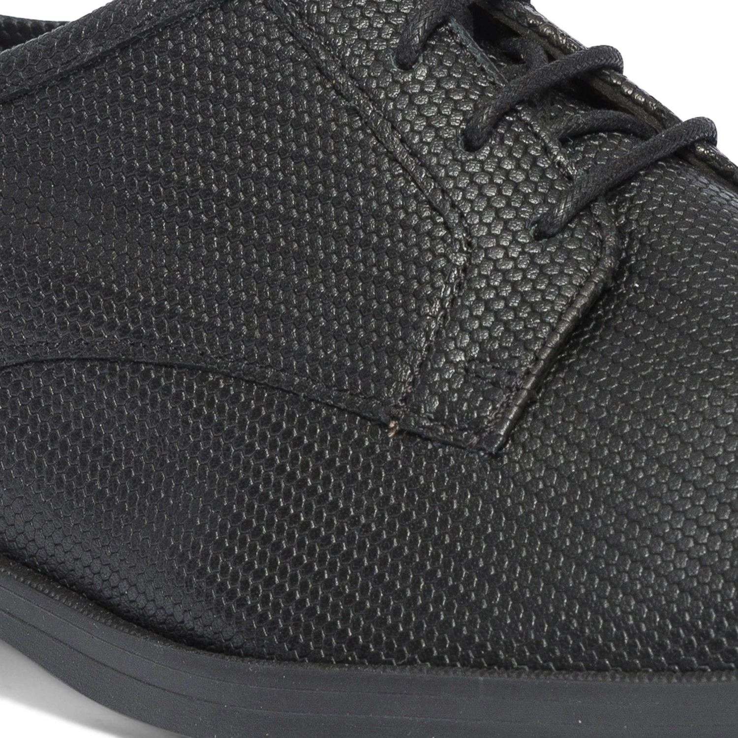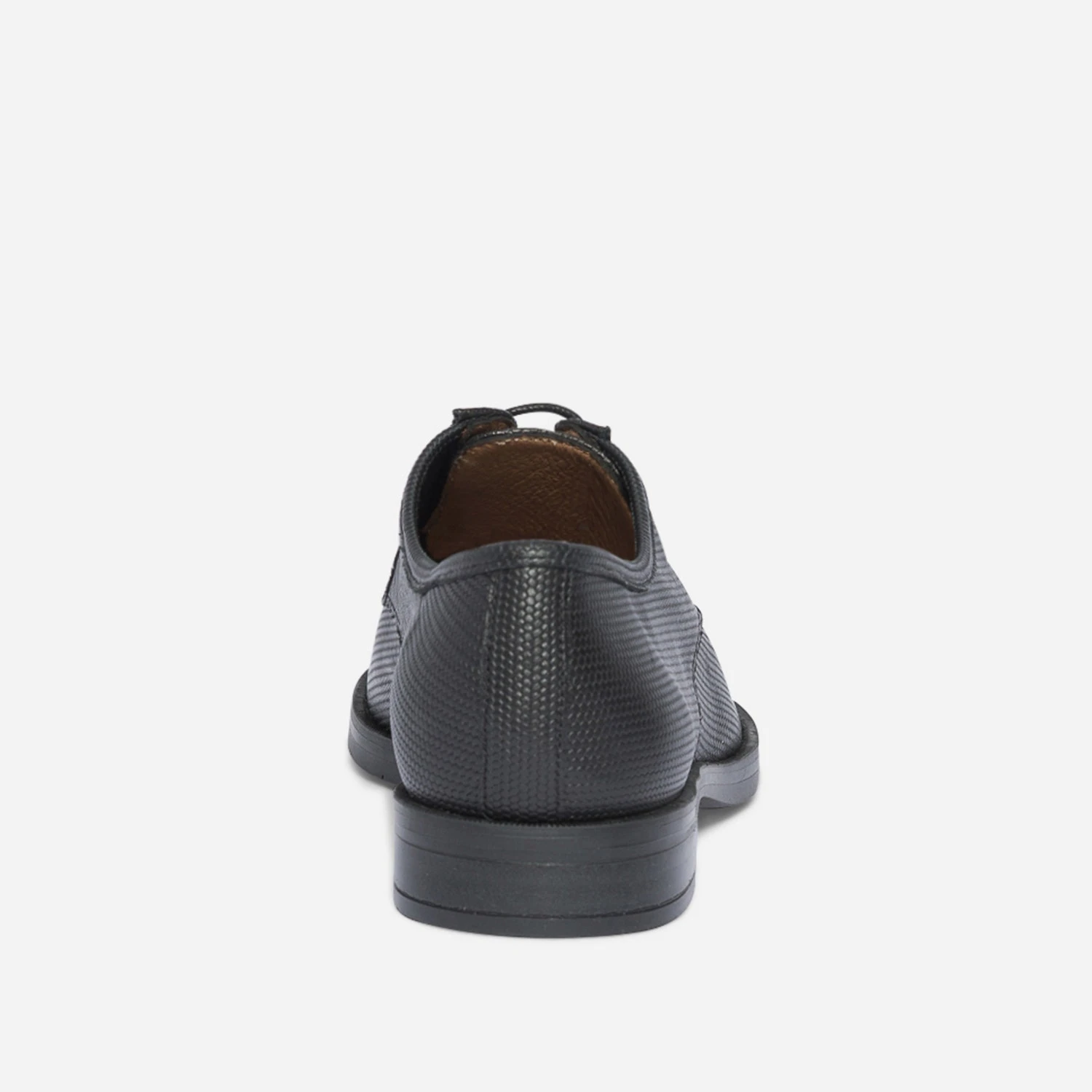 Ce derby pour femme s’approprie le style masculin-féminin à la perfection. En cuir de chèvre ultra souple, il présente une doublure et une première en cuir. Il se décline en coloris noir, sobre et intemporel, rythmé d’un embossage esprit animalier. La semelle intérieure amovible est reconnue pour ses propriétés d’amorti, de respirabilité et de durabilité. Ce modèle est confectionné avec amour dans l’atelier éram de Montjean-sur-Loire (49).