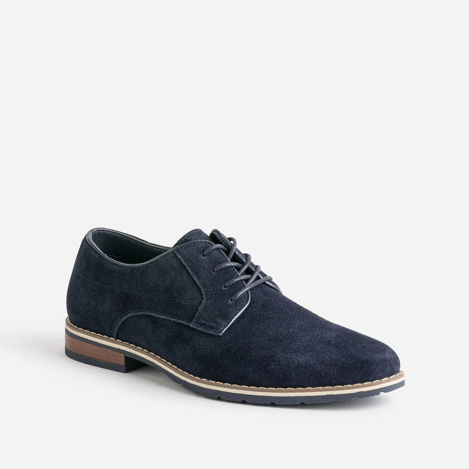 Au quotidien, ou pour une cérémonie, le derby homme est un modèle formel qui s’adapte à beaucoup de styles et de situations. En cuir velours, il se décline en coloris bleu marine, avec embossage discret, et présente une doublure en textile marine chiné. Il se ferme par un lacet rond ton sur ton. A associer avec une chemise blanche et un jean brut ou un pantalon chino kaki.