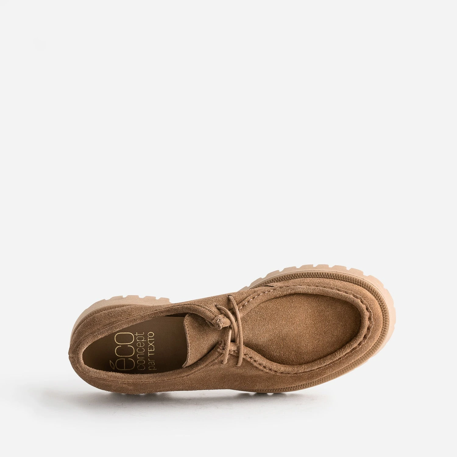 Derby TEXTO Cognac éco-conçu Cuir Velours Cranté
