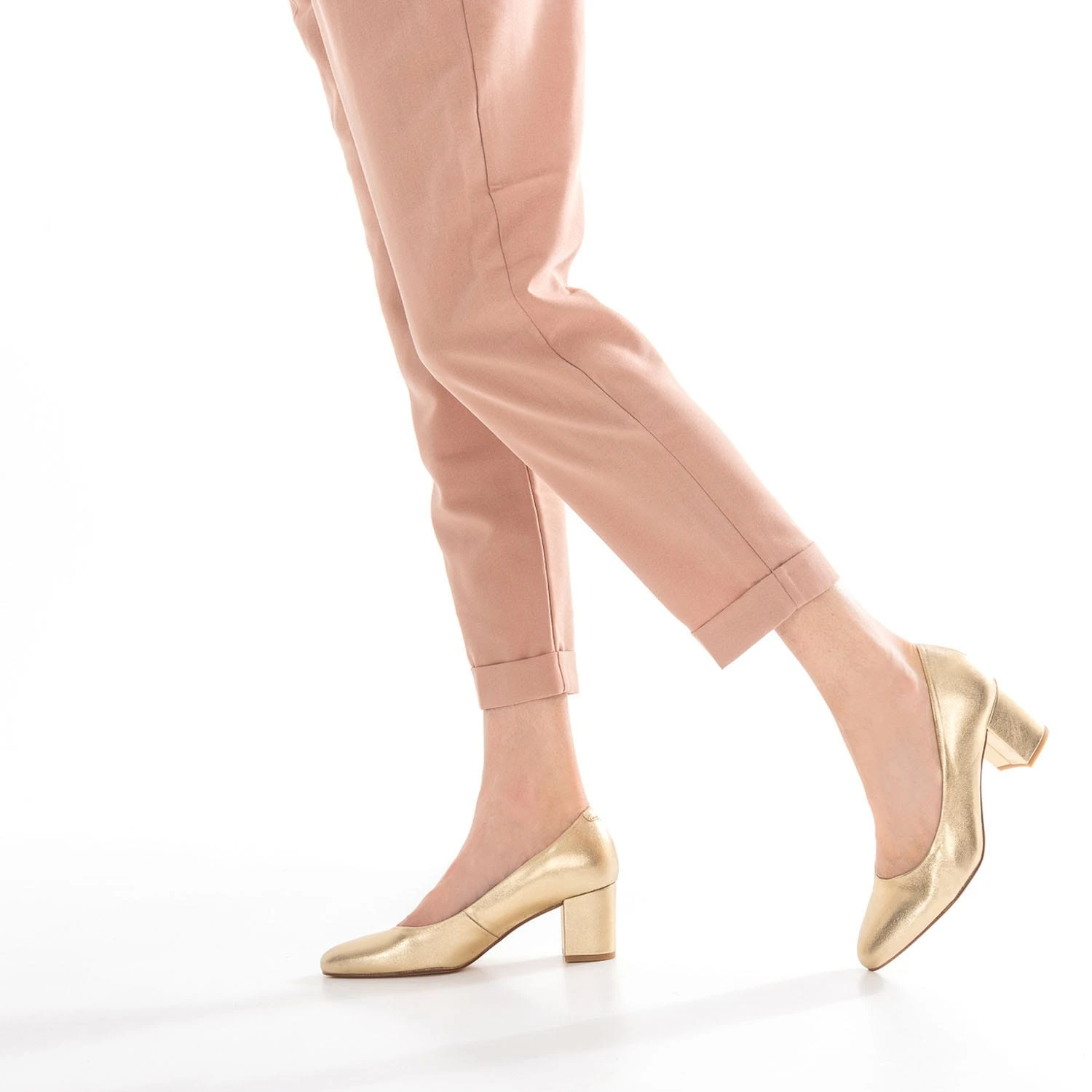 Lignes arrondies et talon carré, tout est une question d’équilibre. Cet escarpin en est la preuve. En cuir doré métallisé, il s’accorde avec tout. Monté sur un talon de 6 cm, ni trop plat, ni trop haut, parfaitement stable, il permet de trotter toute la journée sans se fatiguer. Un modèle idéal pour des événements exceptionnels comme pour booster les tenues du quotidien.