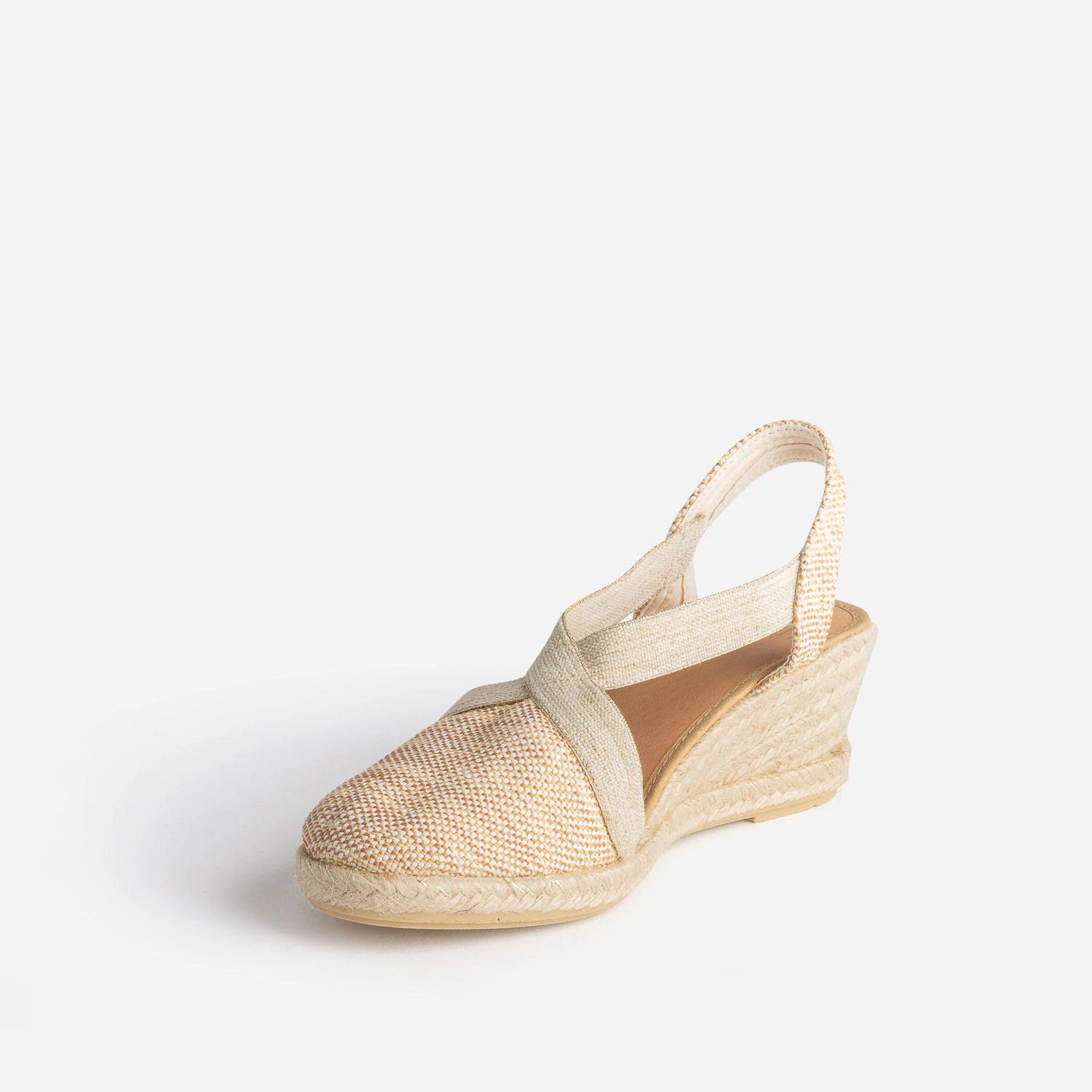 Dites oui au style, non aux contraintes. Cette espadrille femme est l’alliée parfaite du quotidien. En toile beige, camel et écrue rythmée de fils dorés, elle est montée sur un talon compensé recouvert de corde. Ici, pas de boucle ni de lacet, des élastiques beige chiné bordés de doré font office de brides. Un modèle à privilégier avec des pièces en lin dans les mêmes tons.