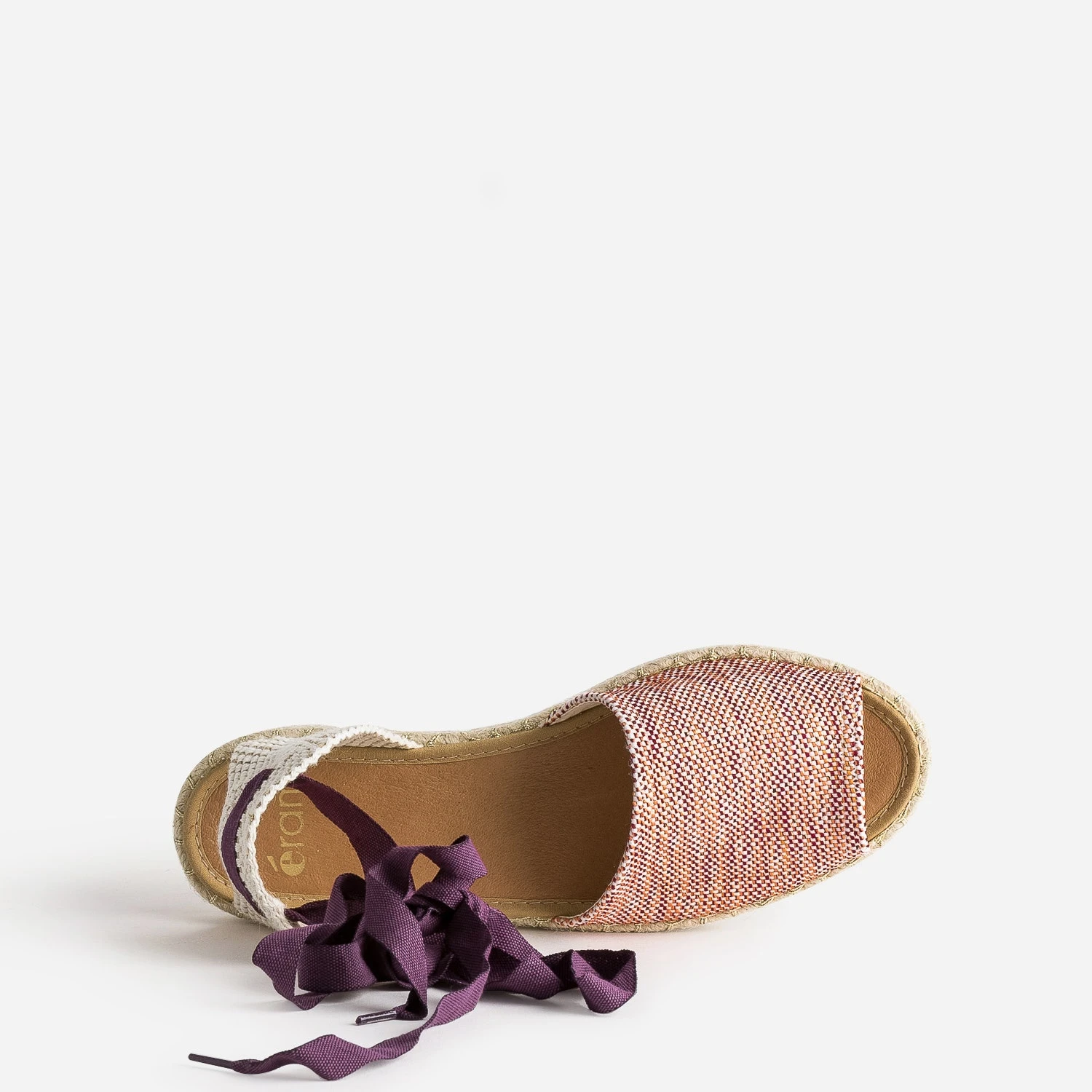 Violet, corail, blanc : c’est le trio de couleurs choisi pour cette espadrille femme revisitĂ©e. Jeu de tressage subtil, laçage autour de la cheville, trĂ©pointe signĂ©e d’un fil dorĂ©, bout ouvert et semelle corde : elle s’adapte aux tenues dĂ©contractĂ©es de l’Ă©tĂ©.