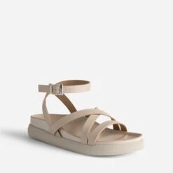 Sandale TBS Cognac Et Marron En Cuir à Brides Marine Et Dorée