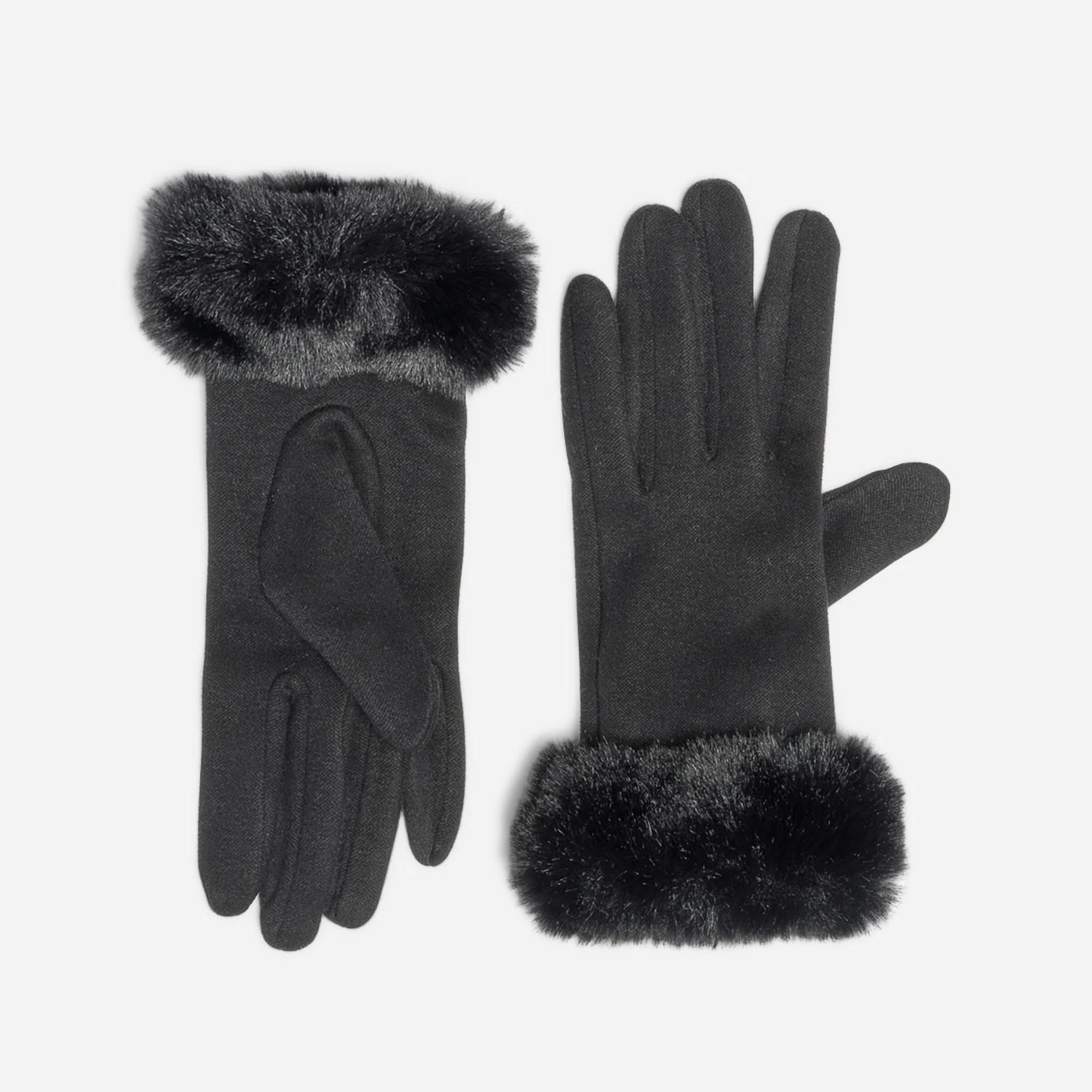 Gants Noirs Avec Bords Imitation Fourrure
