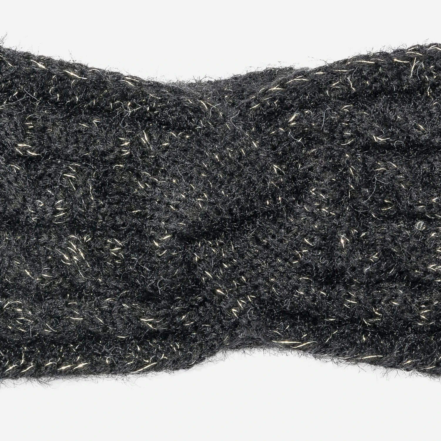 Tricot rythmé de torsades, coloris noir twisté de fils dorés, le headband est assurément raffiné. Taille unique, il convient à toutes les têtes, pour éviter… les prises de tête !
