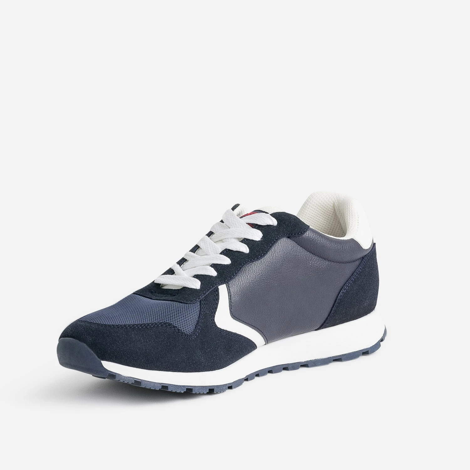 Esprit running pour cette tennis pour homme. Bleu marine, elle mixe mesh et matières synthétiques lisses et suédées, rythmées par des touches blanches. Un modèle pensé pour le quotidien, avec un look sport ou décontracté.