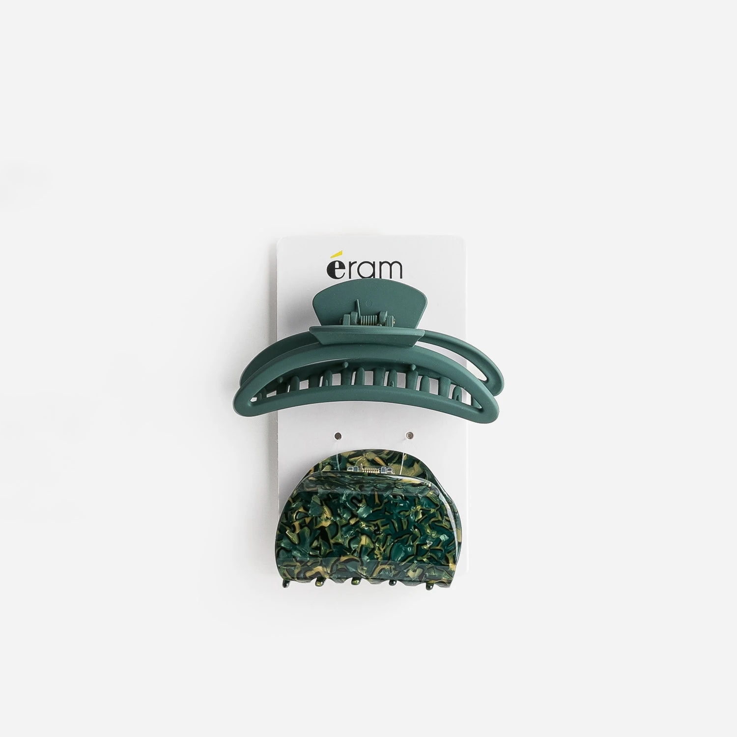 Lot De 2 Pinces-crabe Vert Foncé Et Effet Marbre