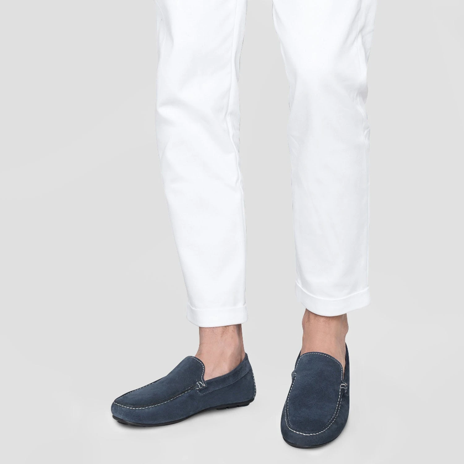 Le mocassin est devenu une chaussure incontournable de tous les dressings masculins. En croĂ»te de cuir bleu, doublĂ©e de cuir de vachette, il se fait plus tendance que jamais. On aime sa semelle Ă picots, signature moderne et dans l’air du temps. Portez-le pieds nus, avec un pantalon chino camel Ă bas retournĂ©s et une chemise blanche, pour une allure casual chic digne des dandys.