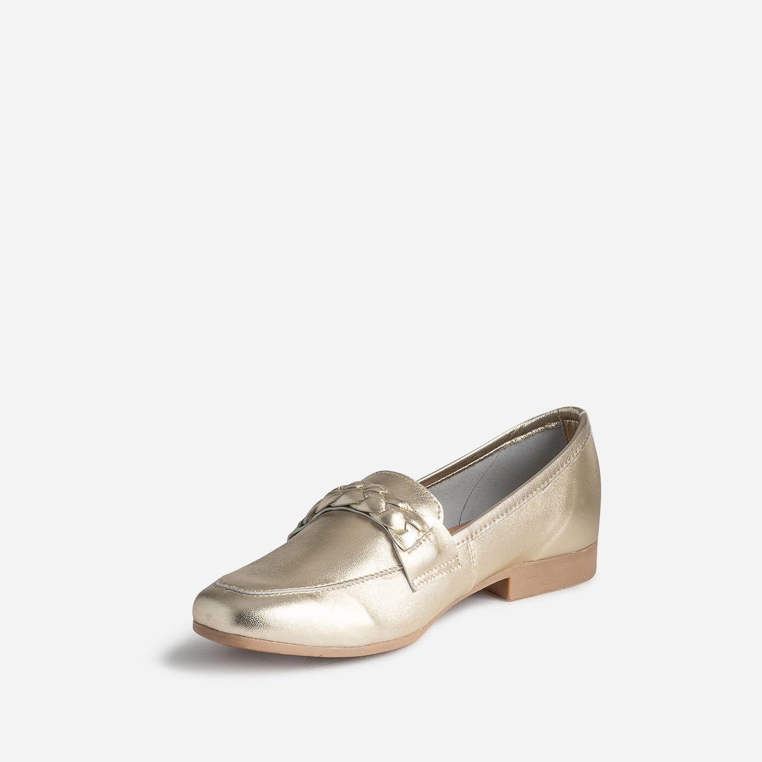 Mocassin Doré En Cuir Avec Patte Tressée -Caprices Chaussures Boutique WWWERM 10383580085 2