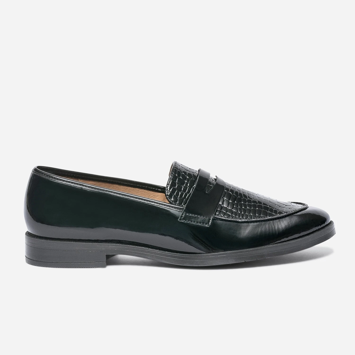 Classique et intemporel, le mocassin intègre le shoesing des femmes modernes et actives. En cuir ultra souple, il se décline en coloris noir, avec finition vernie et embossage croco sur le dessus du pied ; il présente une découpe masque spécifique sur le dessus du pied. La semelle amovible intérieure est reconnue pour ses propriétés d’amorti, de respirabilité et de durabilité. Un modèle à privilégier avec un look masculin/féminin, costume et chaussettes à paillettes, chemise blanche et jean boyfriend, tout au long de la saison.