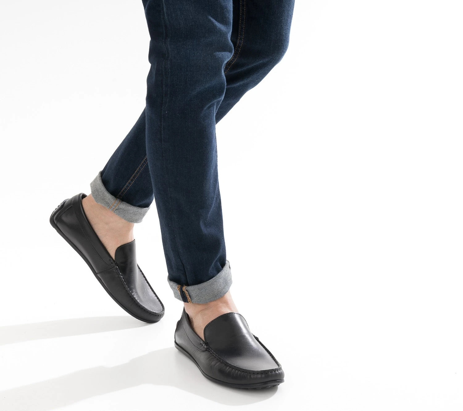 Celui que vous pouvez essayer sans craintes. Celui que vous pouvez suivre les yeux fermés. Celui qui apporte une touche d’élégance innée. Le mocassin homme. Confectionné en cuir lisse, il s’autorise, cette saison, un coloris noir, intemporel. Ligne épurée, coutures ton sur ton, il se porte dès l’arrivée des beaux jours, avec une chemise blanche et un pantalon chino beige, ou un tee-shirt et un bermuda.