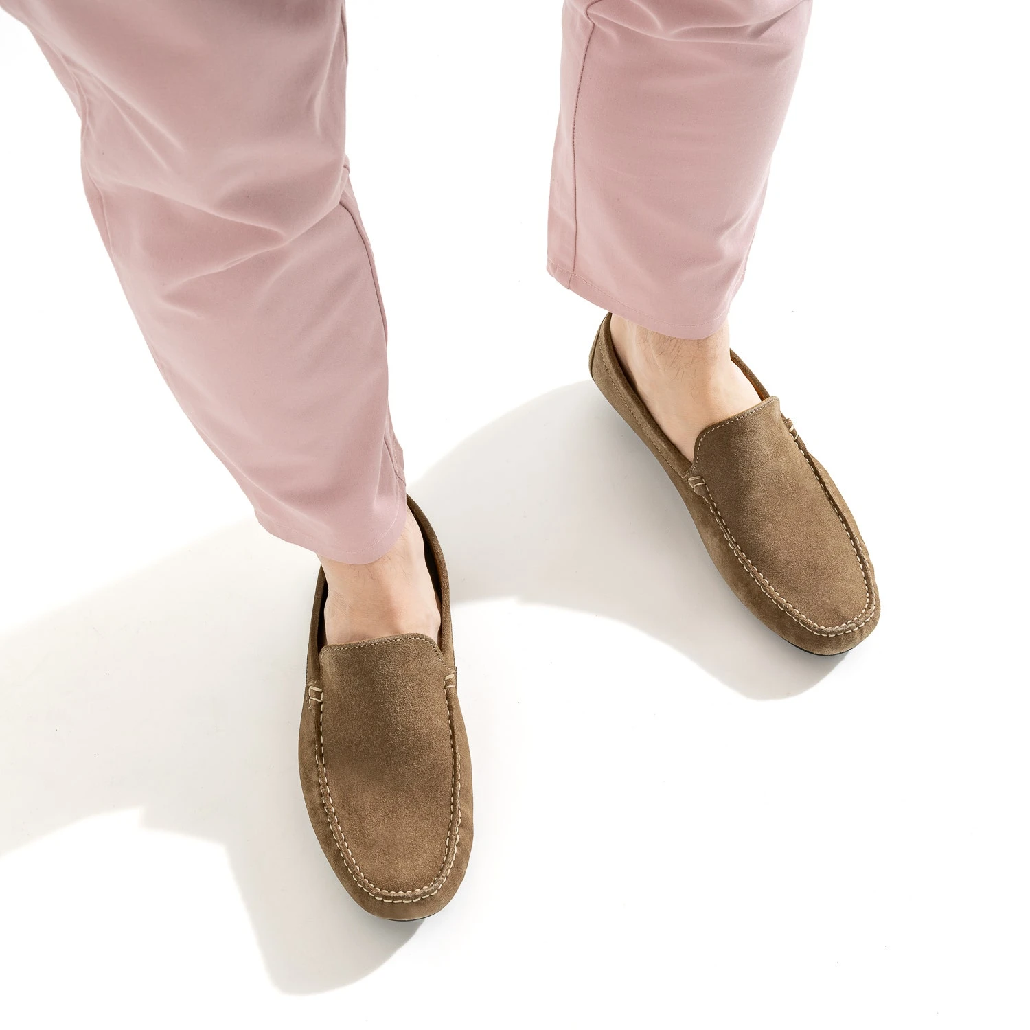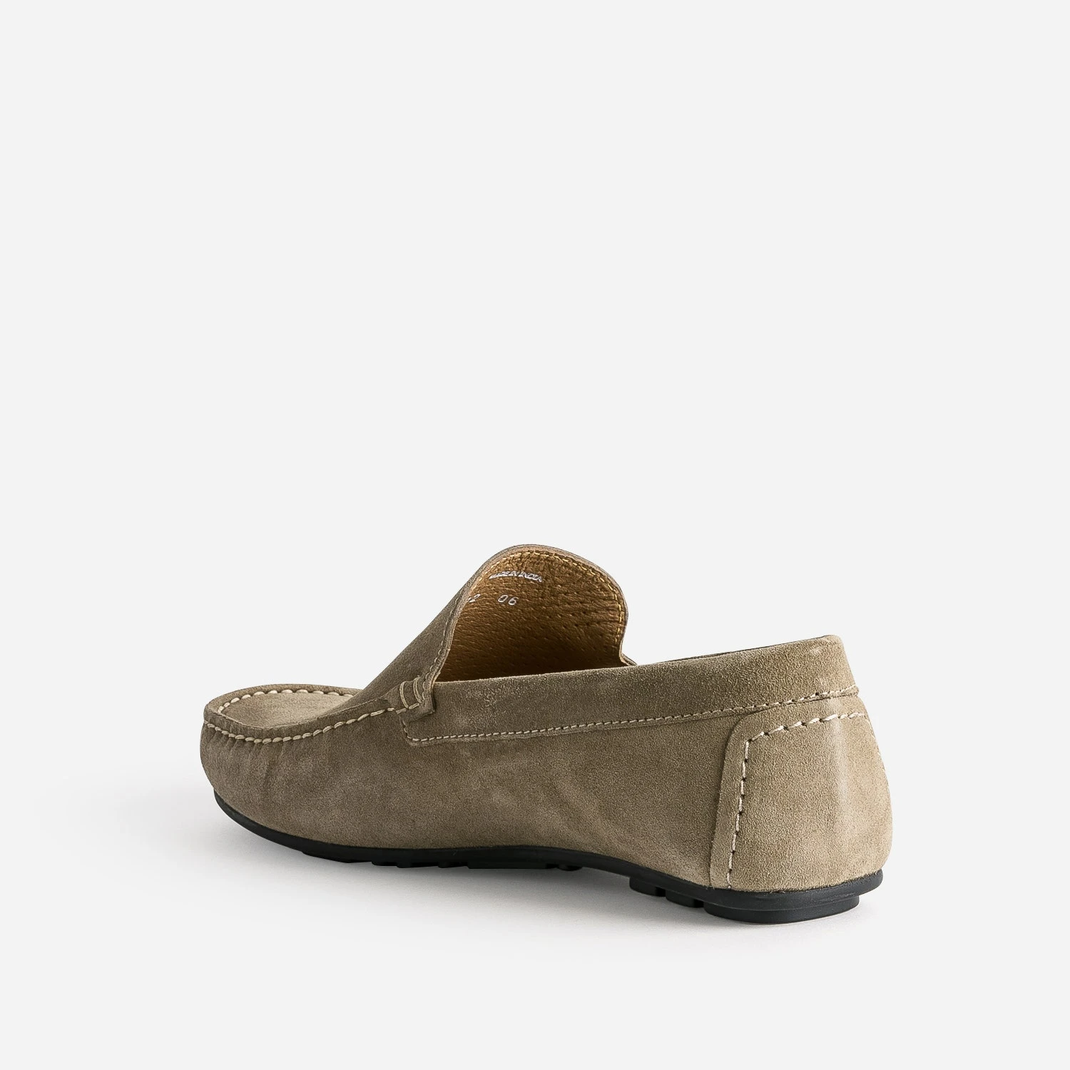 Le mocassin est devenu une chaussure incontournable de tous les dressings masculins. En croûte de cuir taupe, doublée de cuir de vachette, il se fait plus tendance que jamais. On aime sa semelle à picots, signature moderne et dans l’air du temps. Portez le pieds nus, avec un pantalon chino bleu marine à bas retournés et une chemise blanche, pour une allure casual chic digne des dandys.