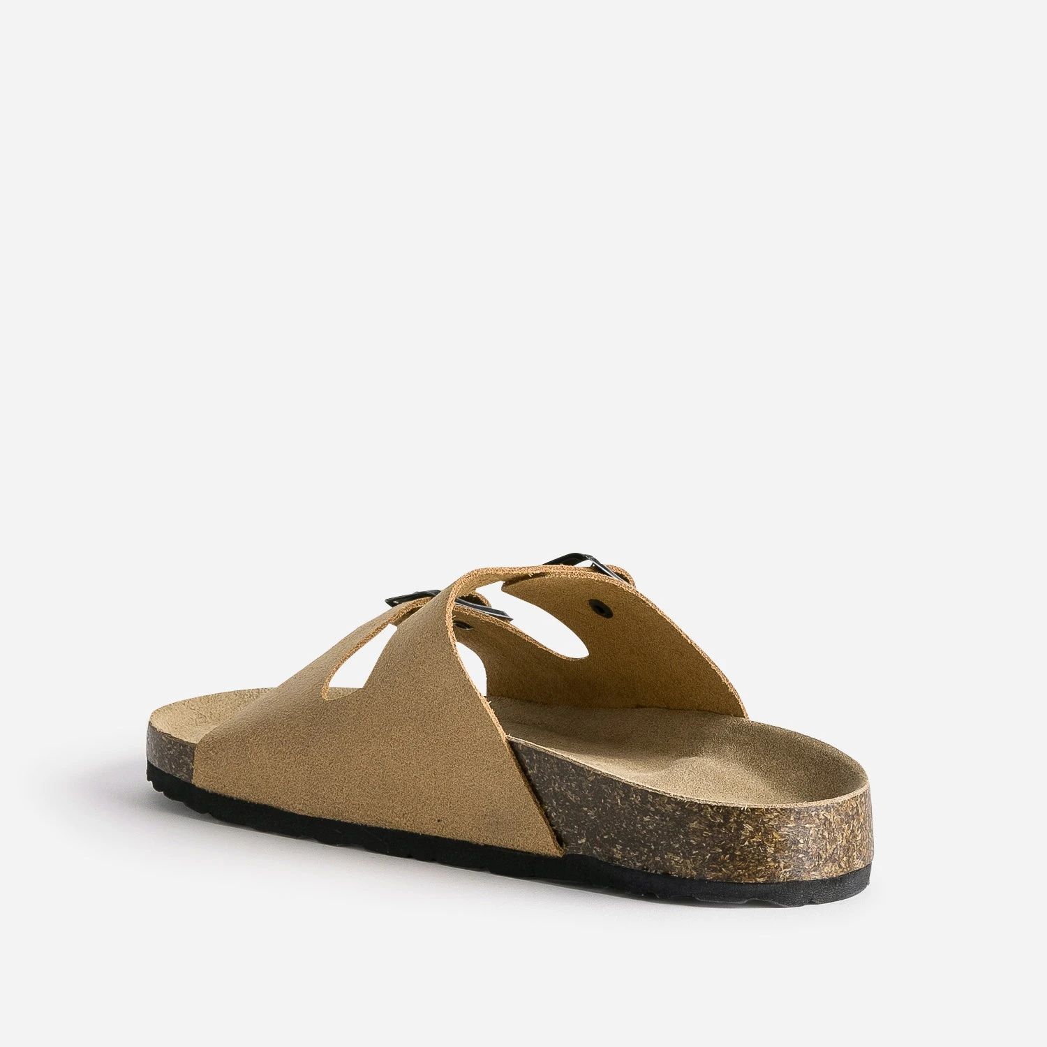 Elevée au rang de it-shoes par le monde de la mode, la mule anatomique est un modèle intemporel. En cuir velours beige, elle est reconnaissable à ses deux brides à boucles métalliques ajustables, montées sur une semelle anatomique également en cuir velours. Un modèle à réserver au week-end et aux tenues décontractées.