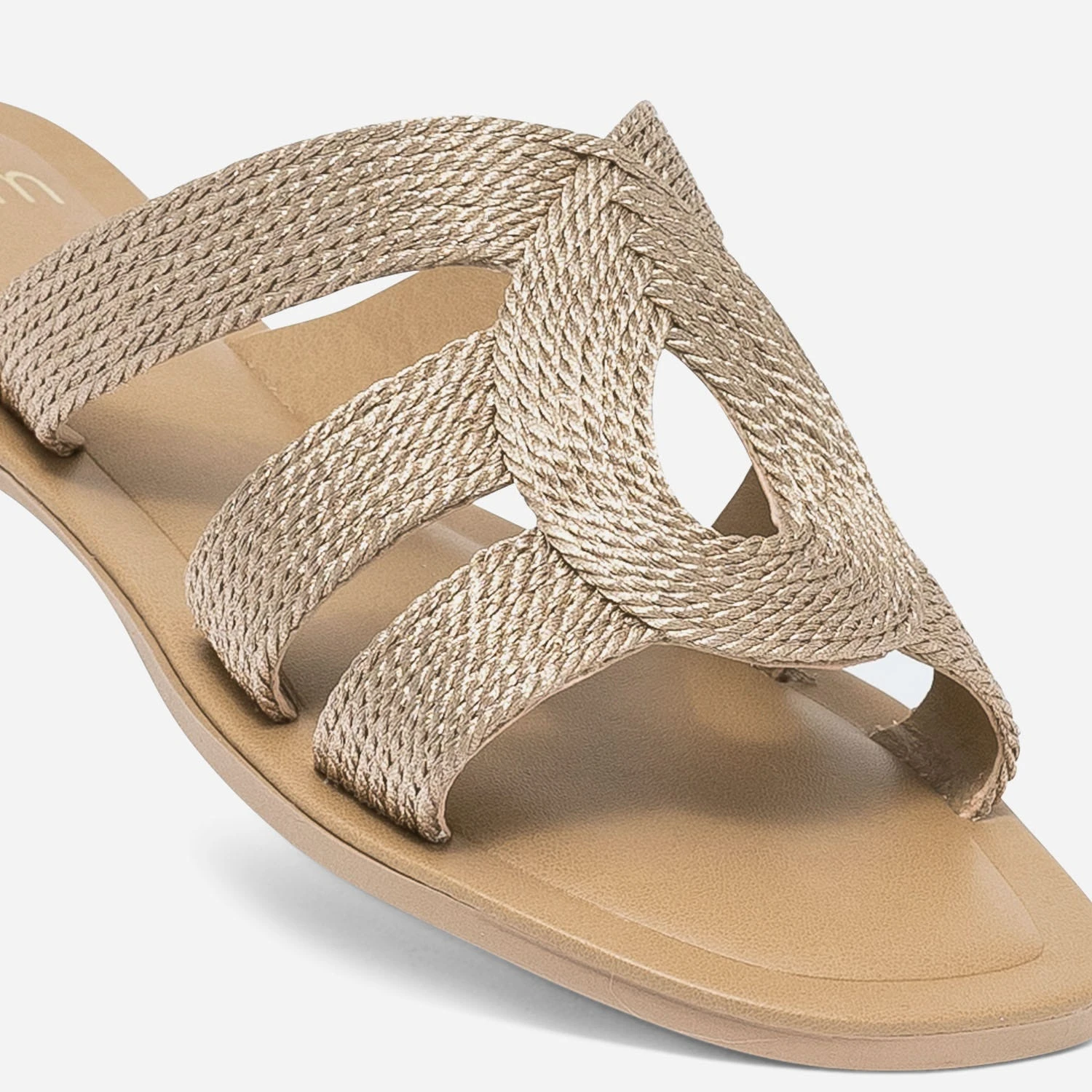Sublimer le pied, le bronzage de l’été, les tenues légères et raffinées. Voilà la promesse de cette mule pour femme. En textile bronze, elle présente 3 brides tressées, jointes par un bel entrelac sur le dessus. Un modèle à prioriser avec des teintes pastel ou naturelles.