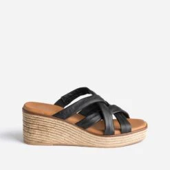 Mule Compensée Noire éco-conçue En Cuir Souple