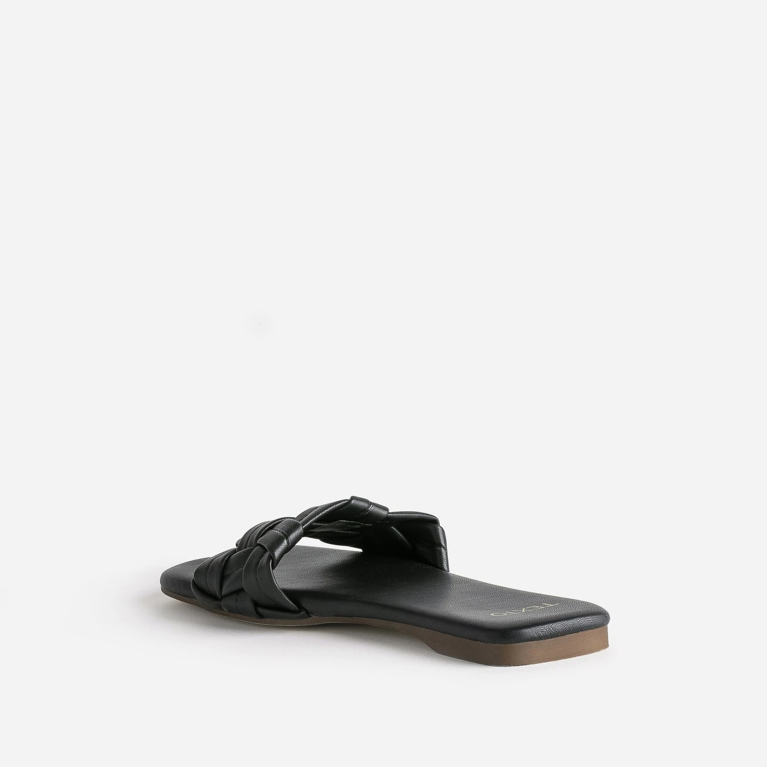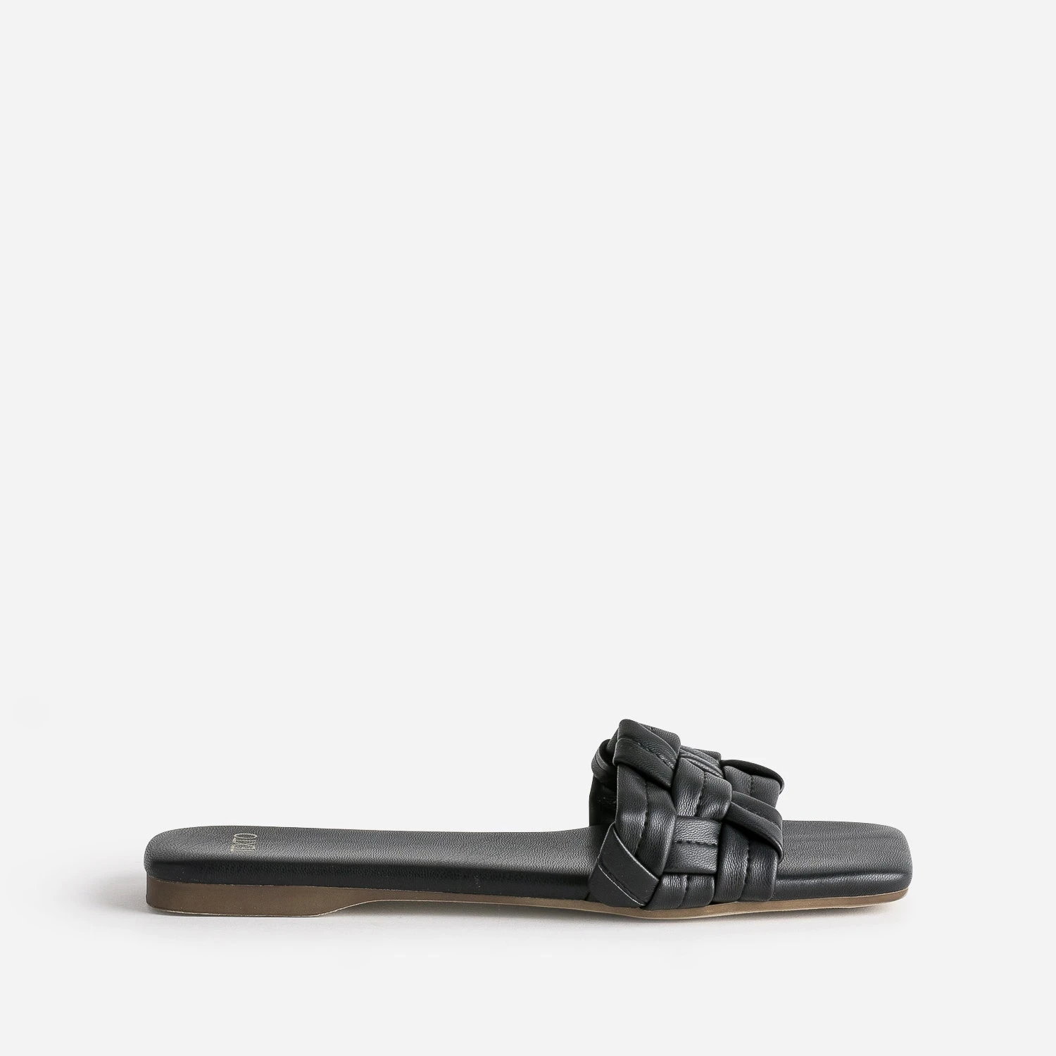 Conçue d’une large bride tressée façon matelassage, montée sur une semelle plate, cette mule pour femme séduit les adeptes d’un style ethnique chic. Noire, elle se laisse moderniser par un bout carré. Un modèle à oser avec une robe-tube noire ou plus décontracté, avec un débardeur oversize et un short en jean.
