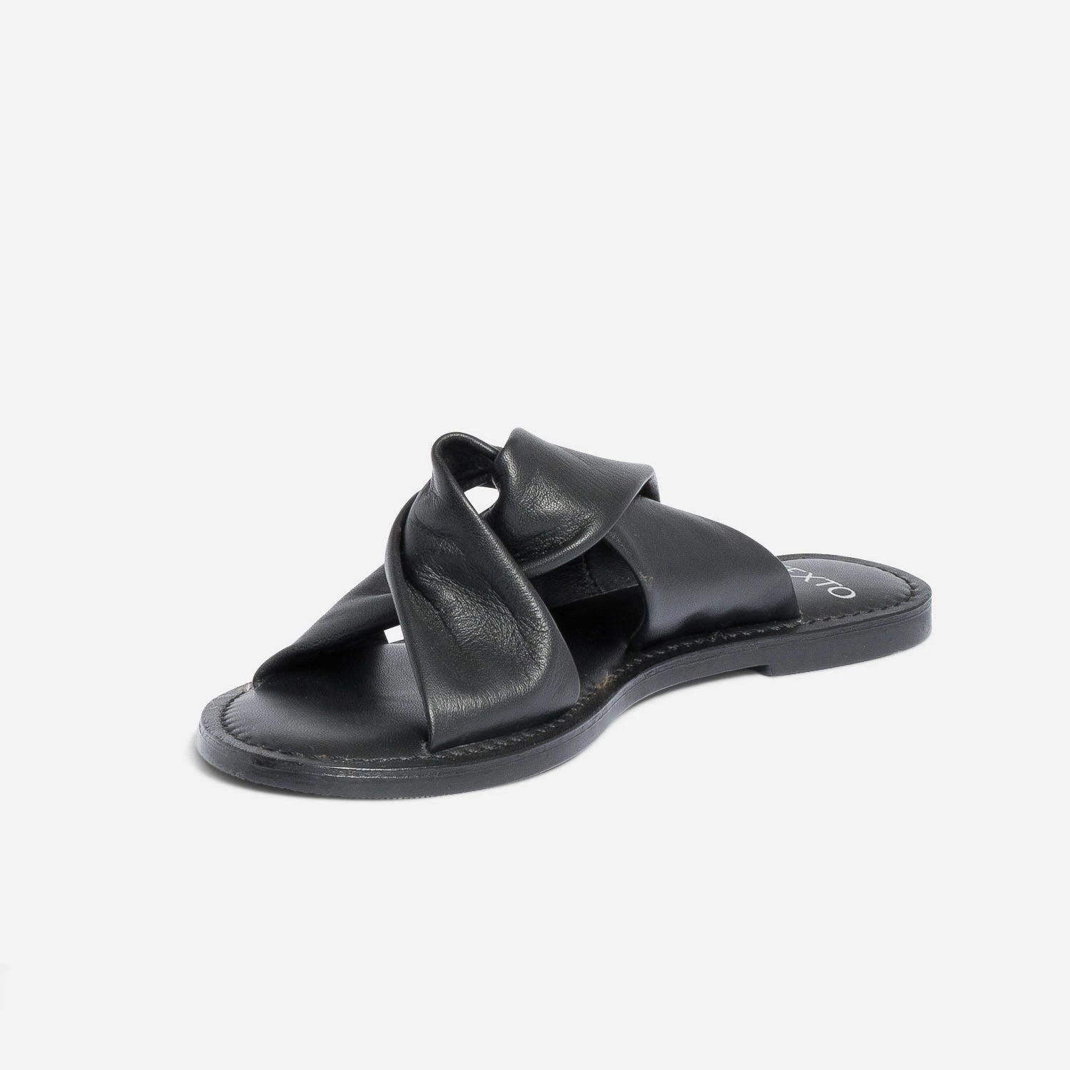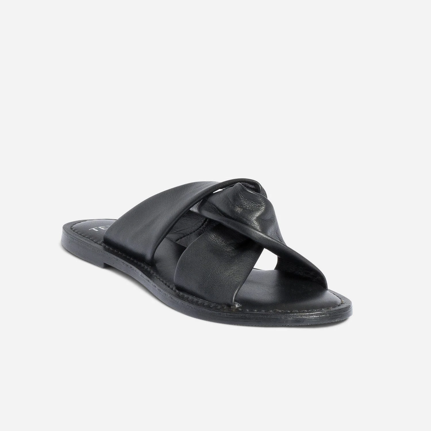 Plus minimaliste que ça ? ça n’existe pas ! Cette mule femme est entièrement confectionnée en cuir, depuis ses larges brides souples croisées sur le dessus du pied, jusqu’à la première. Noire, elle est l’alliée idéale des looks du quotidien. Un modèle à porter avec un tee-shirt à épaulettes et un pantalon large en total look black.
