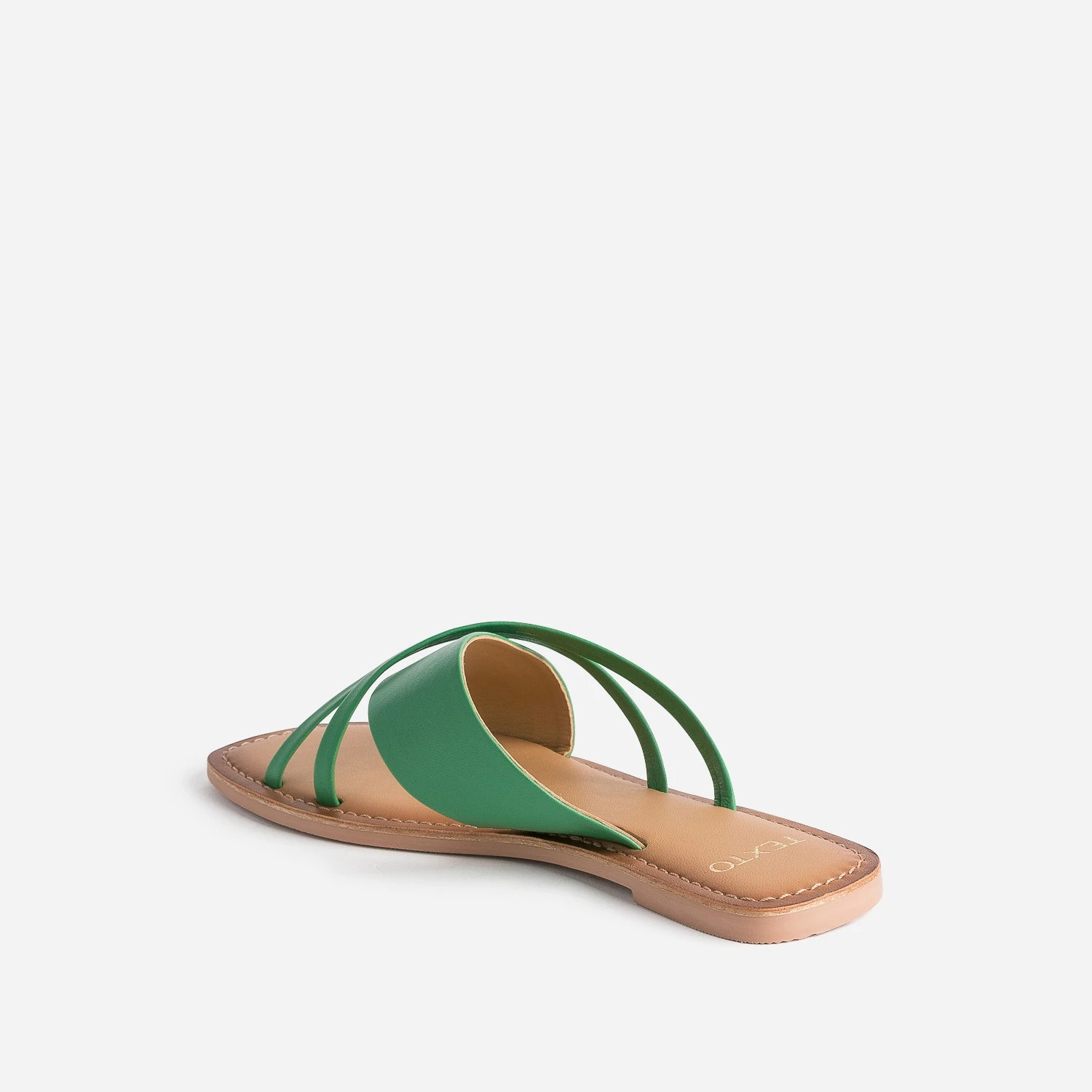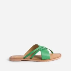 Extra plate et à bout carré, cette mule pour femme est une signature forte de la saison estivale. En cuir vert prairie, elle se démarque par un jeu de brides fantaisie sur le dessus du pied, permettant de l’enfiler et de l’ôter en un clin d’œil. Un modèle à associer avec une jolie robe imprimée, reprenant ce vert rafraîchissant.