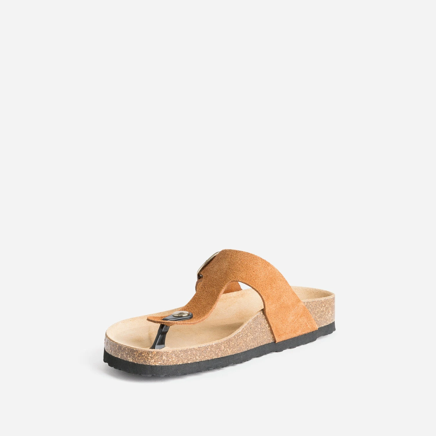 Pourquoi on aime cette tong ? Pour sa semelle anatomique, spécifiquement étudiée pour soulager le pied et offrir un confort optimal. Pour sa confection, en cuir velours camel foncé et en cuir velours beige sur la semelle. Elle signe un style casual largement plébiscité par les modeuses. L’essayer, c’est l’adopter !