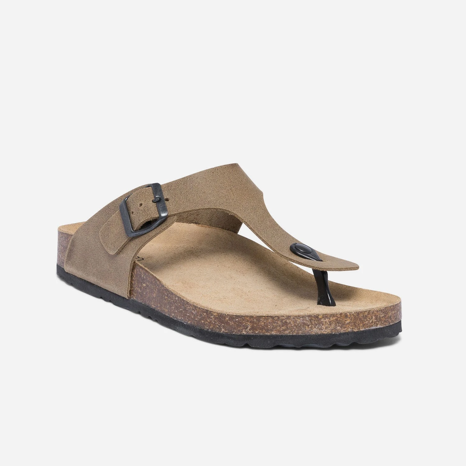 La mule de la saison adopte la forme tong en toute décontraction. Dédiée aux hommes qui ne tolèrent aucun compromis entre le style et le confort, elle associe une bride en cuir taupe déjà patiné et une semelle première anatomique en cuir velours. Un modèle à privilégier avec des teintes naturels, blanc, beige, crème ou camel.