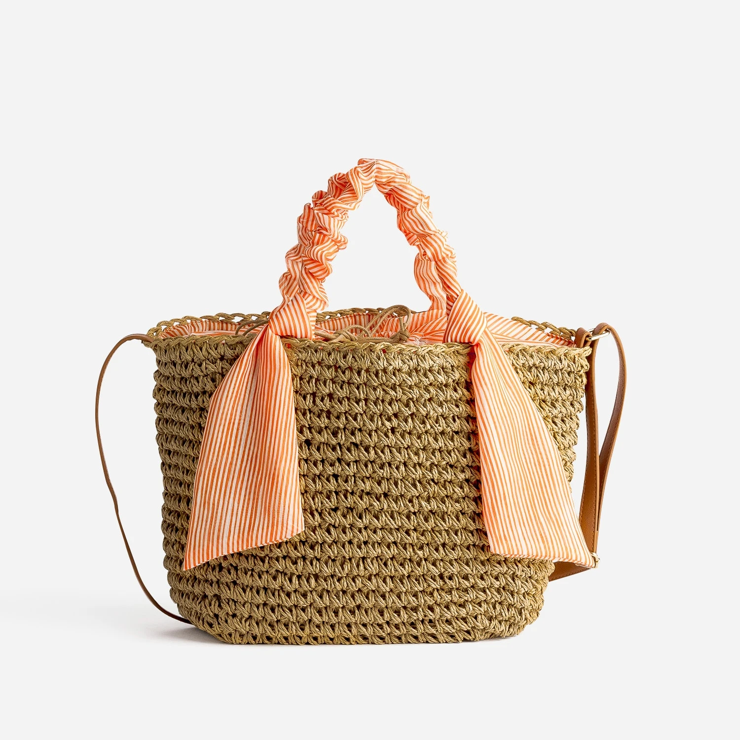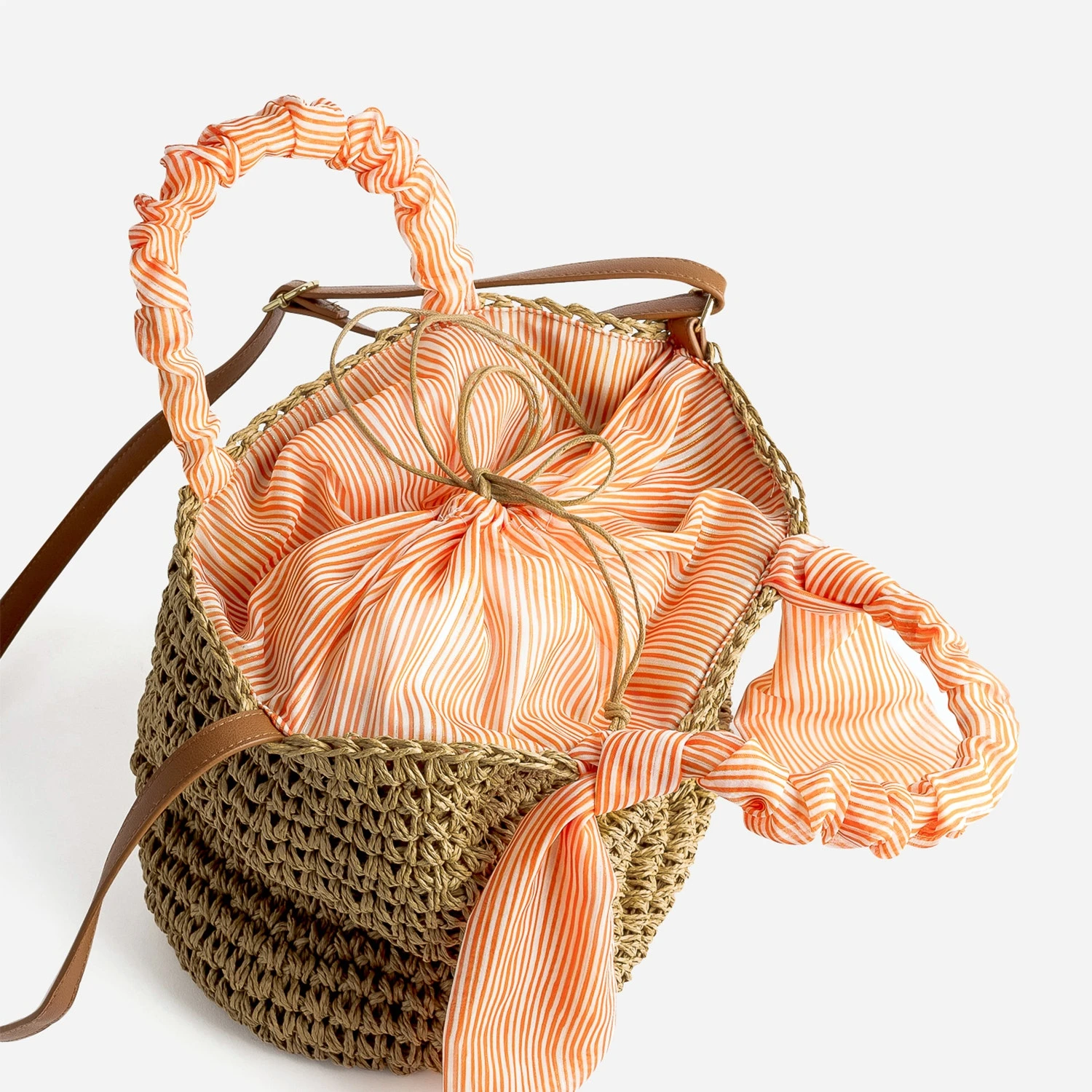 Panier Beige Foncé Tressé à Anses Orange Rayées